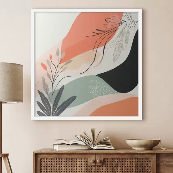 Poster Gestileerde plantmotieven tegen een achtergrond van aquarelvlekken N° f48839