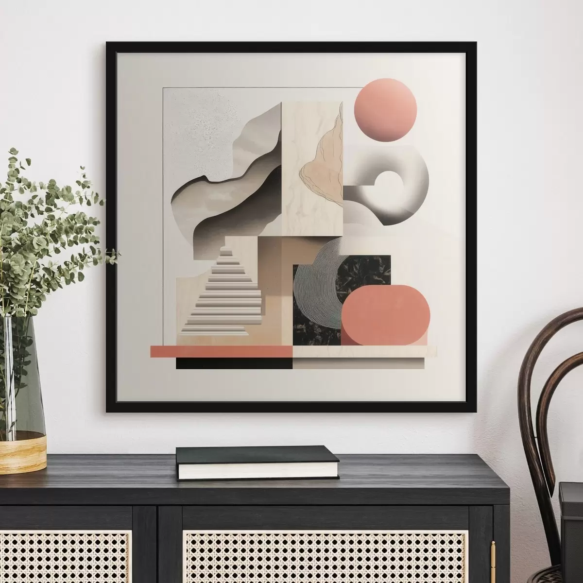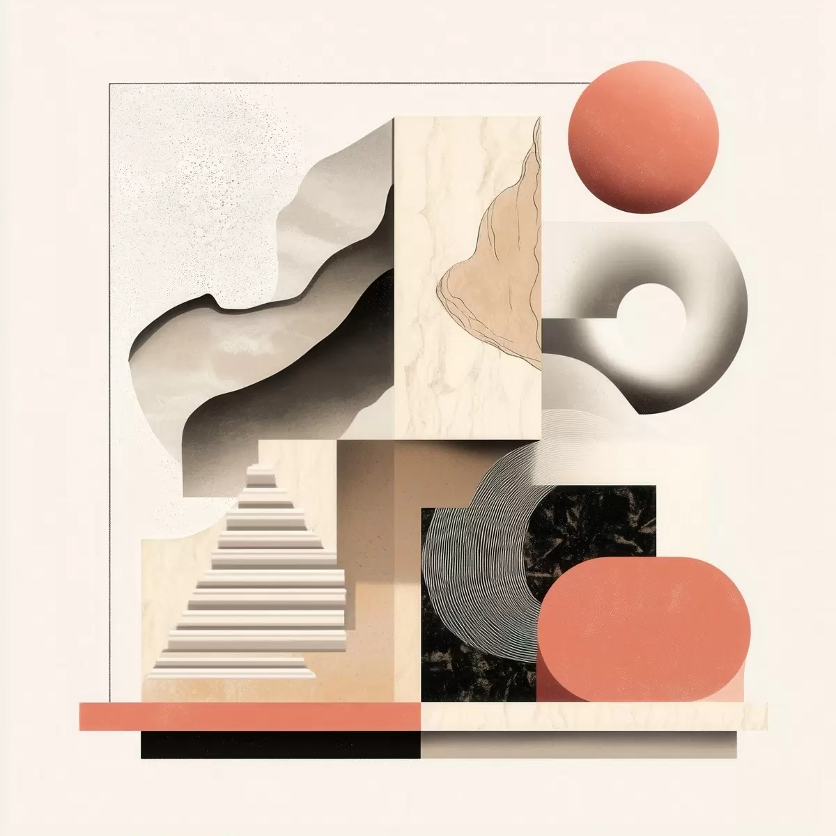 Poster Abstracte vormen in een beige-grijze kleurstelling in een eigentijdse schilderstijl N° f48842