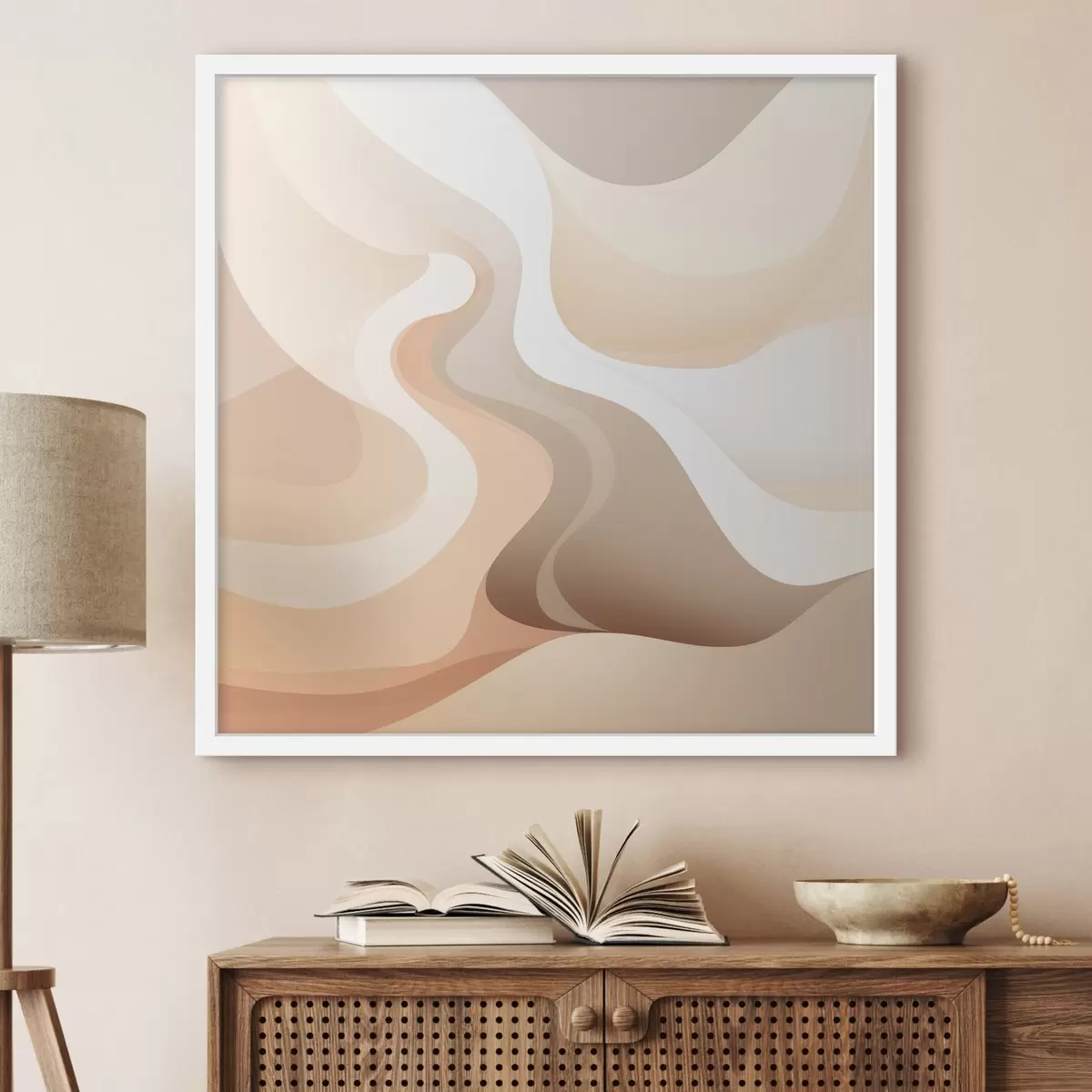 Poster Een harmonie van gebogen vormen en crèmekleurige tinten in de stijl van hedendaagse kunstillustraties N° f48846
