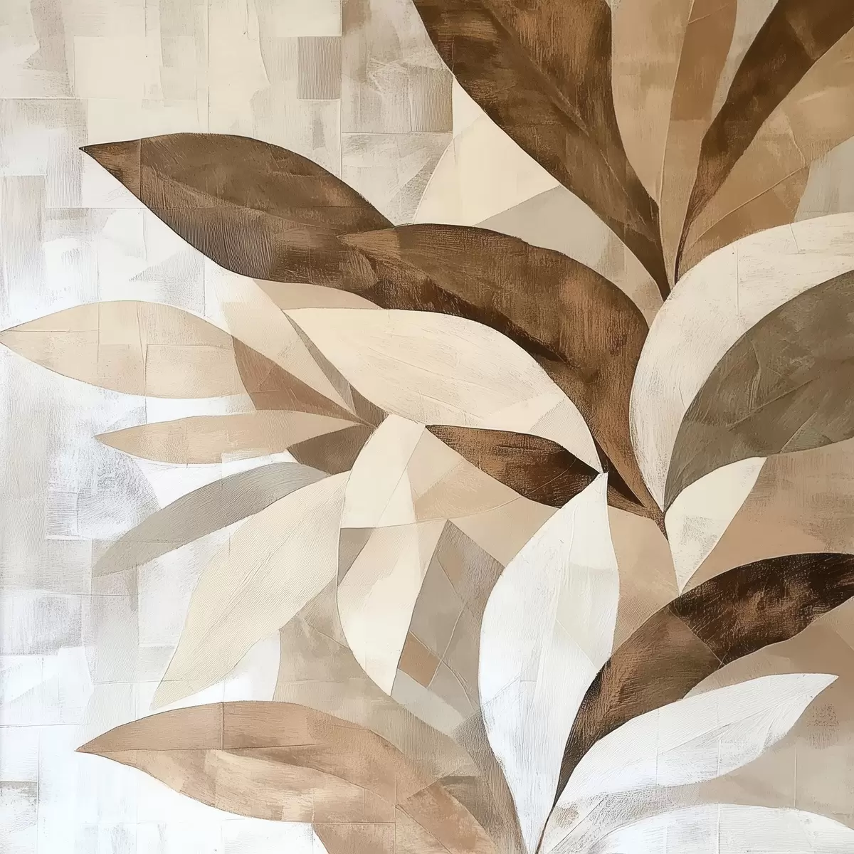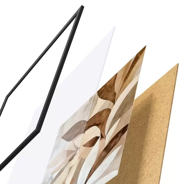 Poster Abstracte bloemcompositie met grote bladeren in bruin-beige tinten N° f48848