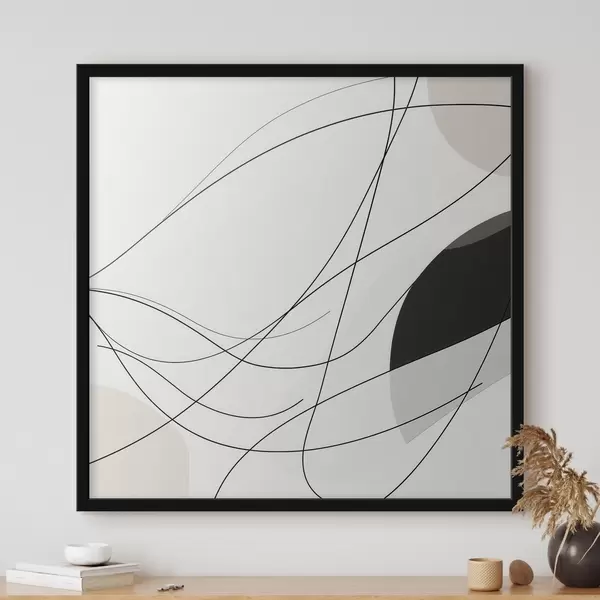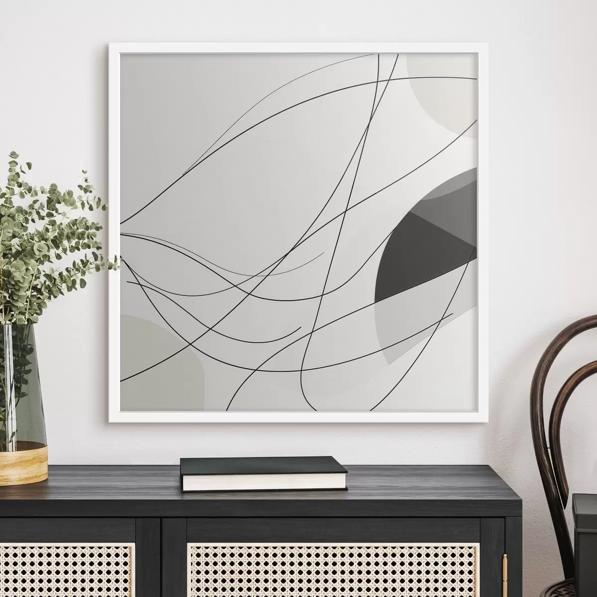 Poster Abstracte compositie met dunne, gebogen lijnen in minimalistische stijl N° f48854