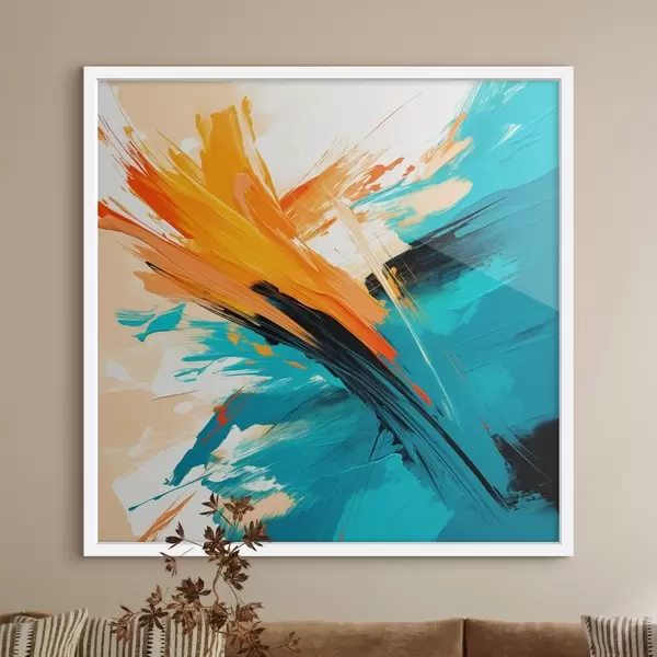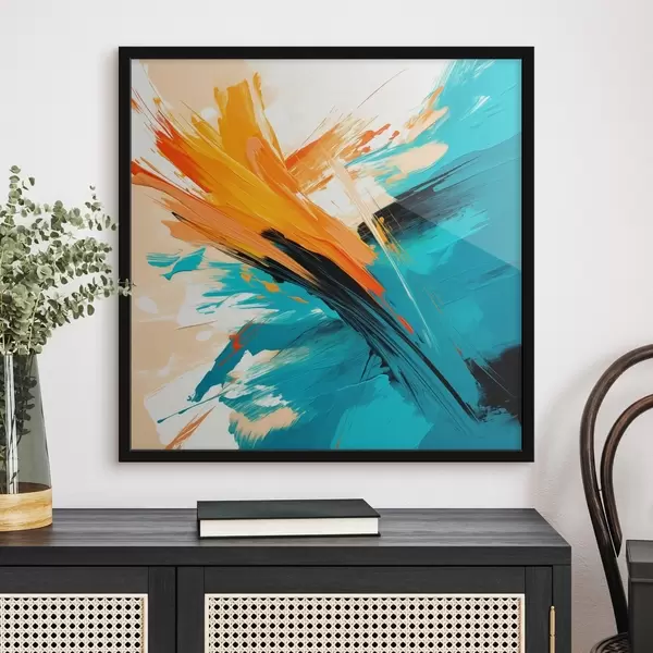 Poster Een levendige voorstelling in een turquoise-terracottakleurig palet, uitgevoerd in een eigentijdse schilderstijl N° f48855