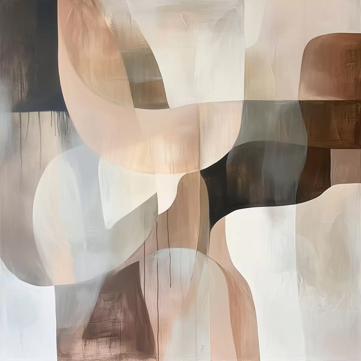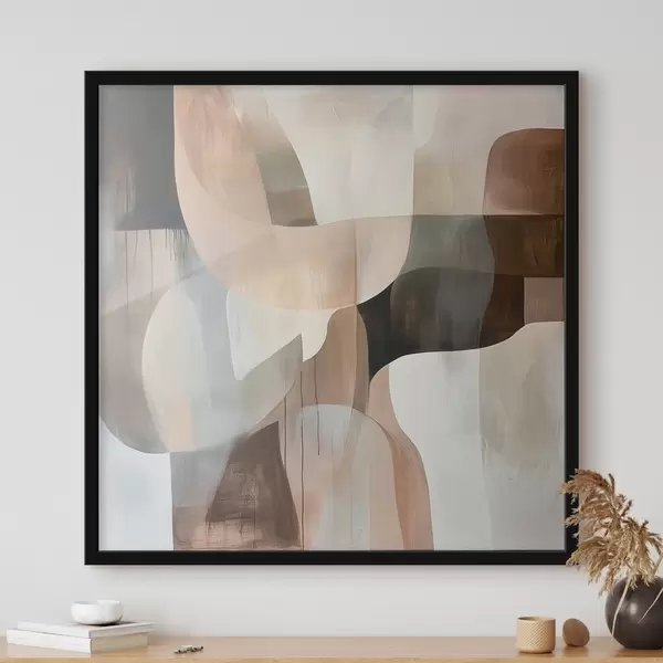Poster Abstracte compositie in een warm beige-koraalkleurig palet N° f48859