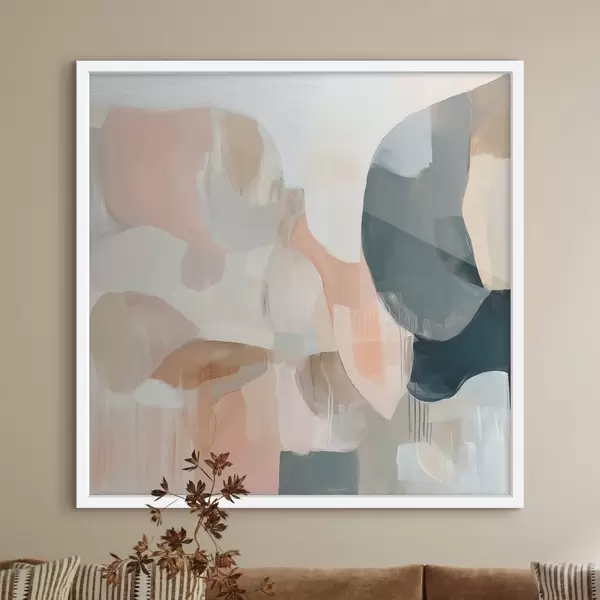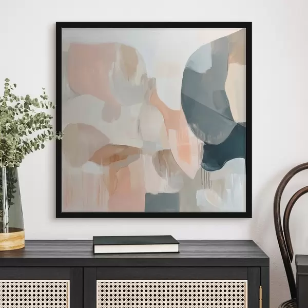 Poster Een abstracte compositie in pastel- en donkerblauwe tinten, uitgevoerd in een eigentijdse schilderstijl N° f48860