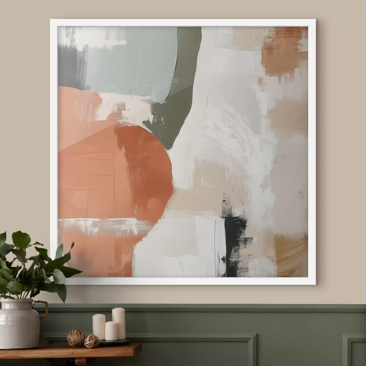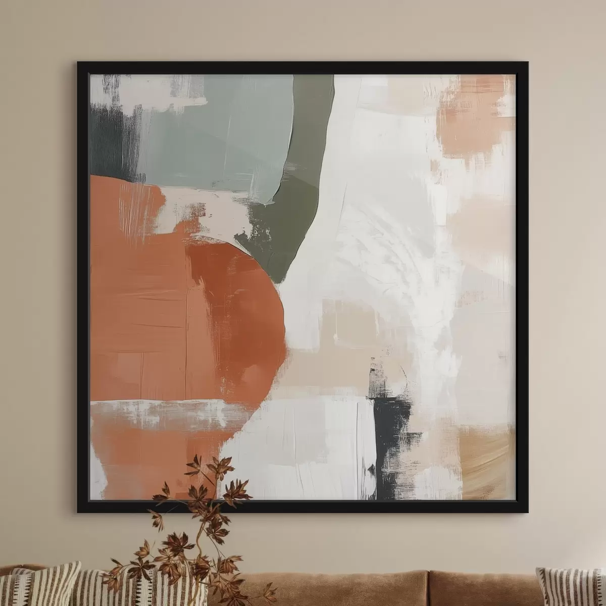 Poster Een combinatie van geometrische vormen en vloeiende lijnen in een eigentijdse abstracte stijl N° f48868