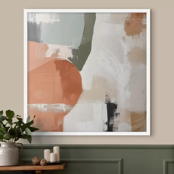 Poster Een combinatie van geometrische vormen en vloeiende lijnen in een eigentijdse abstracte stijl f48868
