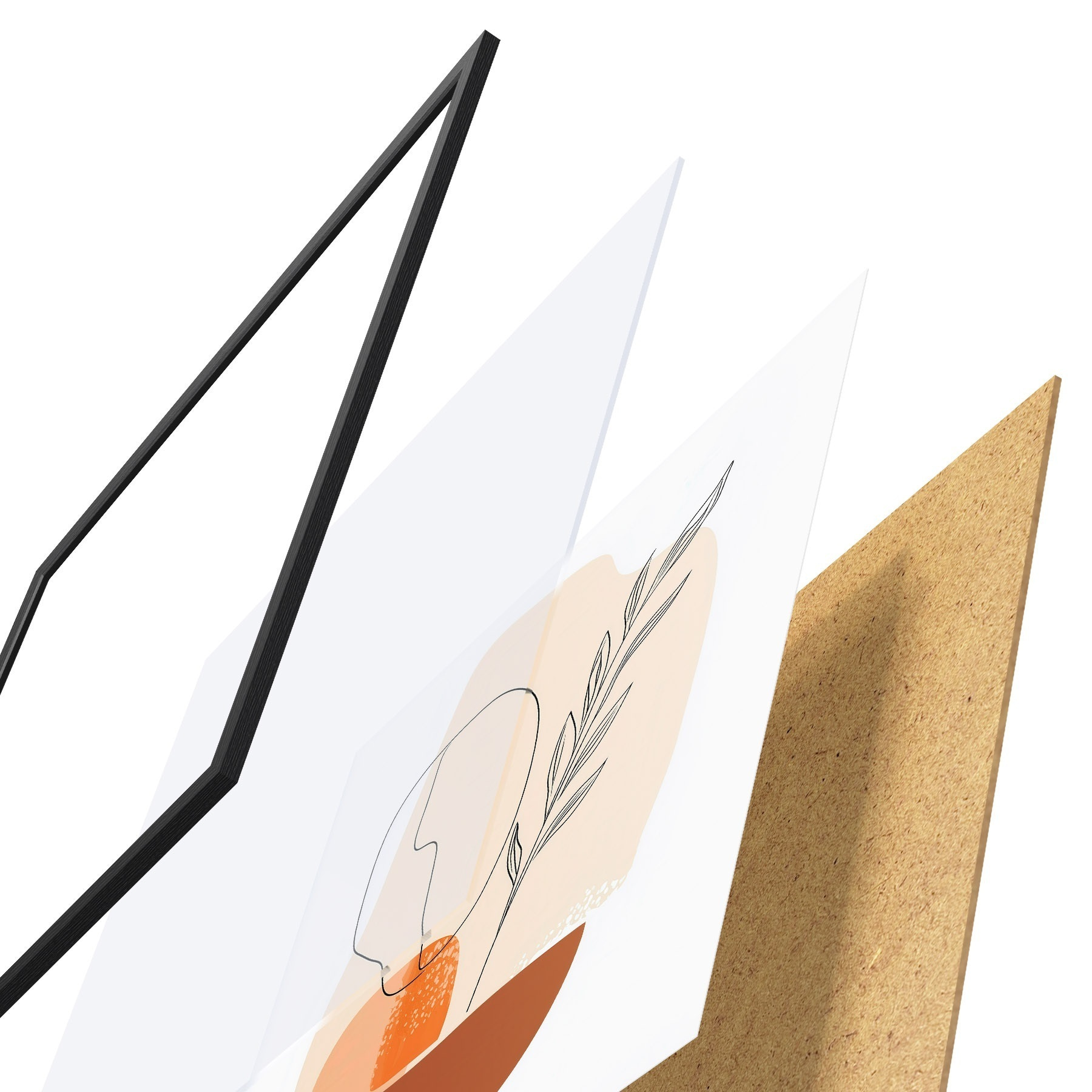De poster bestaat uit een frame, plexiglas, geprinte afbeelding en spaanplaat achterkant. De poster kan meteen aan de muur worden gehangen dankzij de bevestigingen op de achterkant.