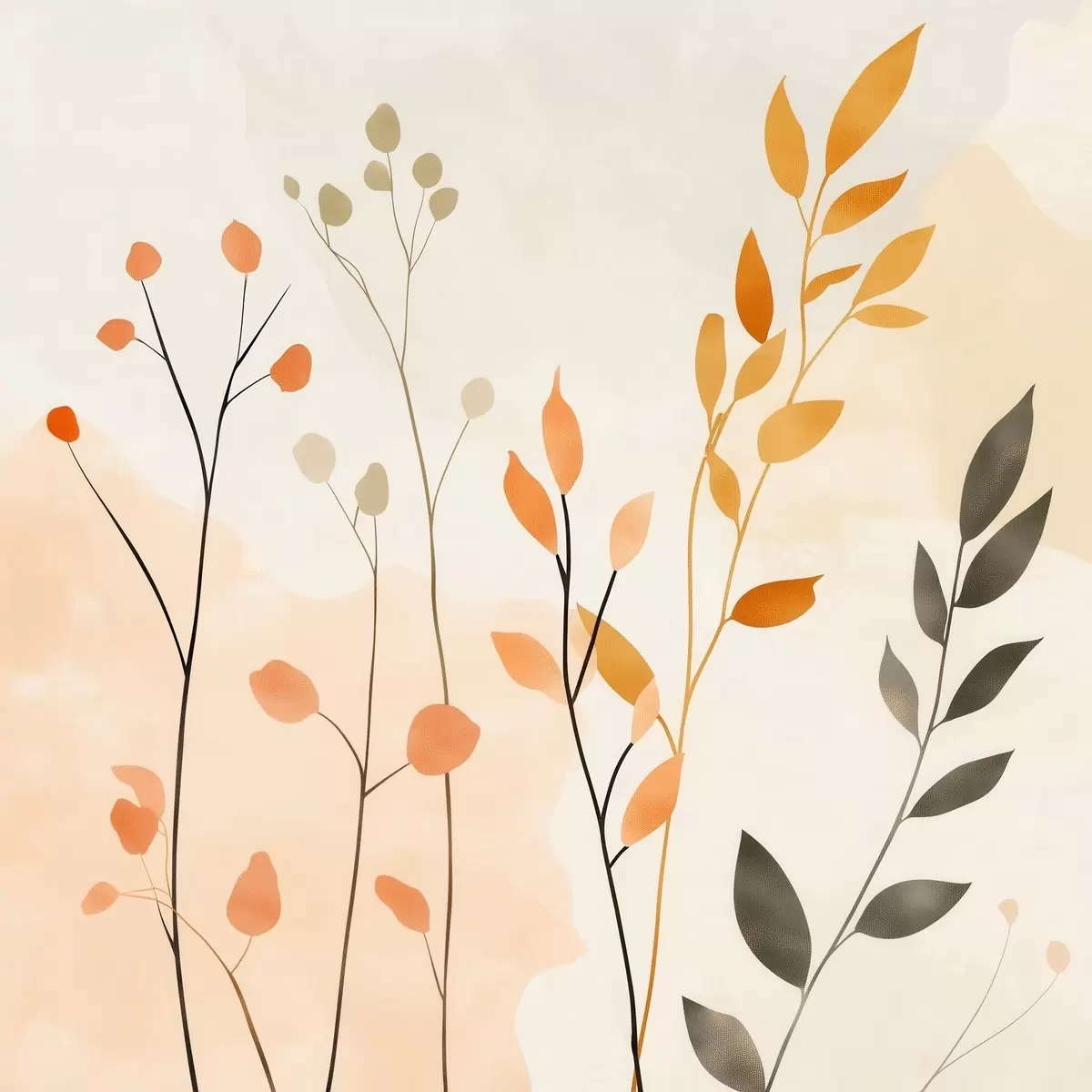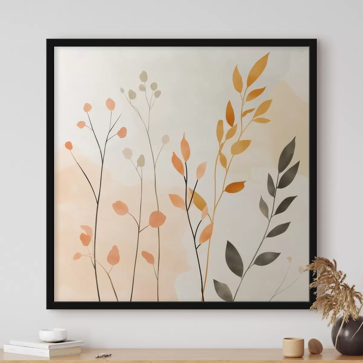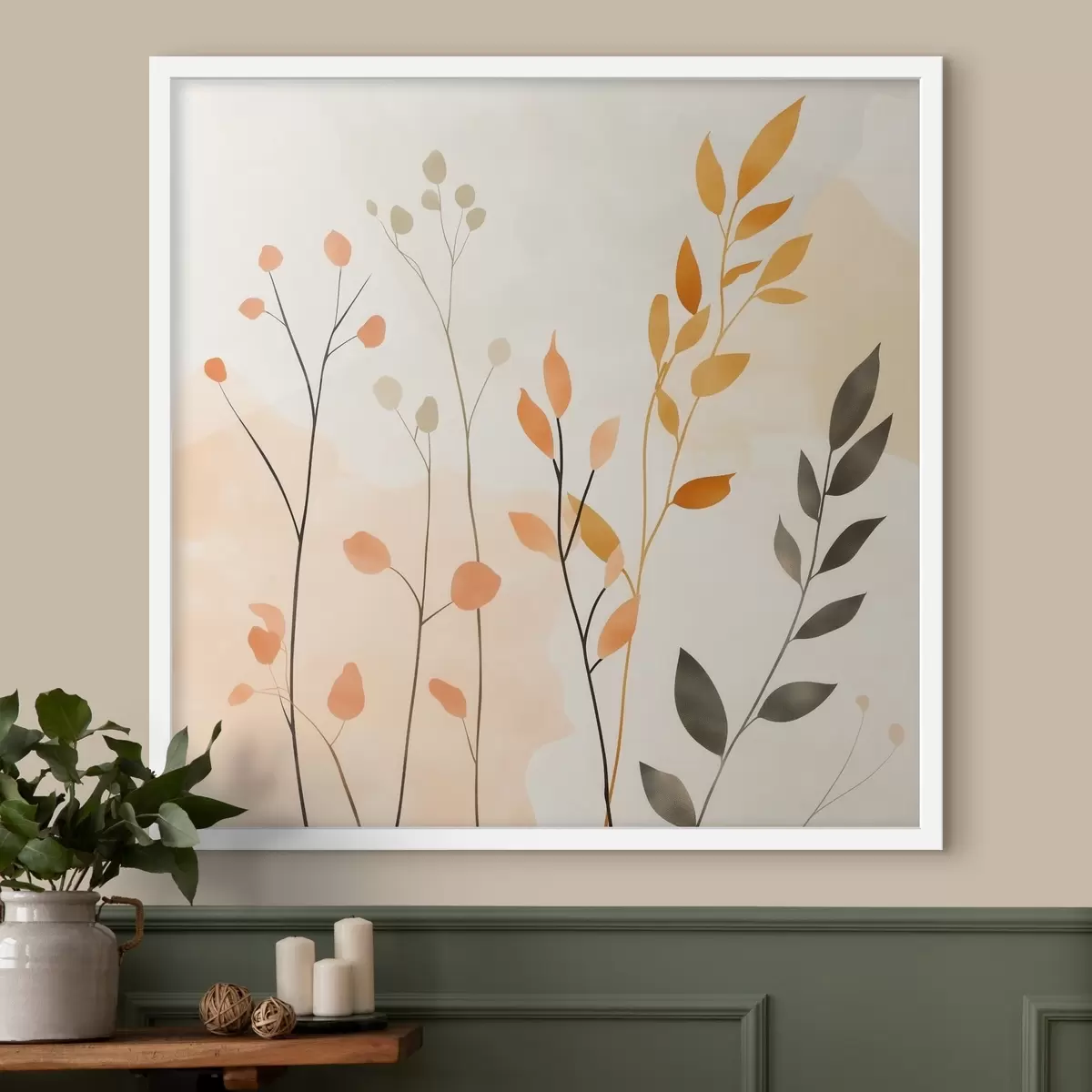 Poster Pastelcompositie met fijn bladwerk in een eigentijdse schilderstijl N° f48873