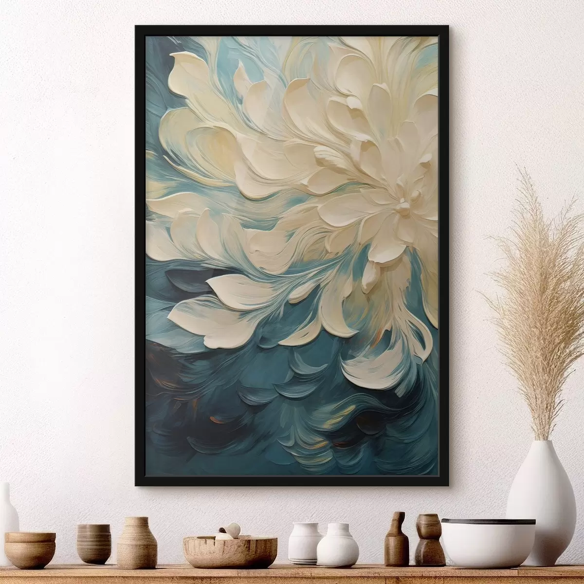 Je kunt het schilderij ophangen aan schroeven. Hiervoor leveren we bevestigingen bij onze foto's, zodat je de foto gemakkelijk kunt ophangen.