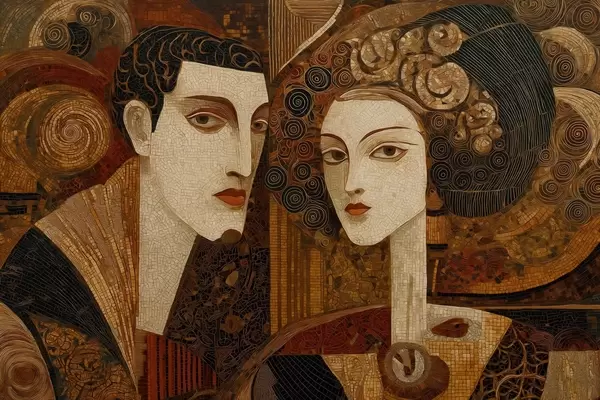 Poster Stel in mozaïekstijl, abstract portret N° f48933