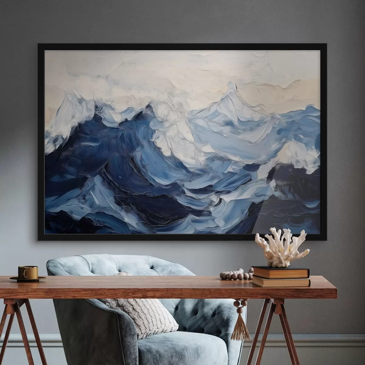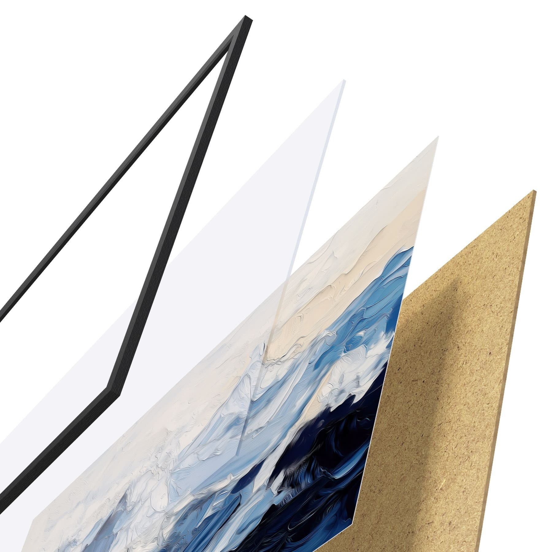 De poster bestaat uit een frame, plexiglas, geprinte afbeelding en spaanplaat achterkant. De poster kan meteen aan de muur worden gehangen dankzij de bevestigingen op de achterkant.
