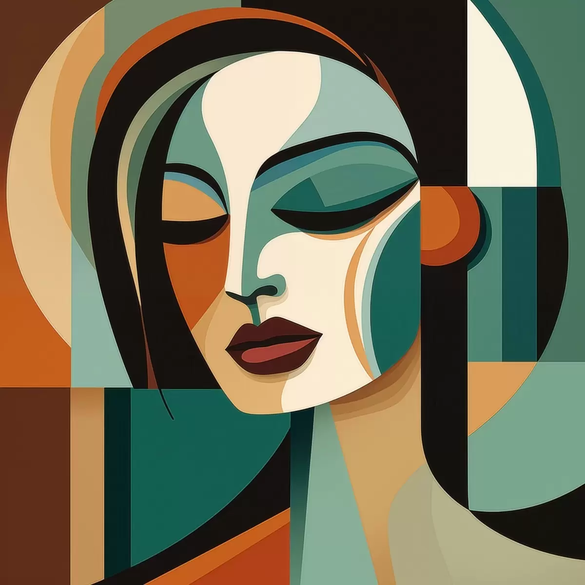 Poster Vrouwenportret in geometrische stijl N° f48952