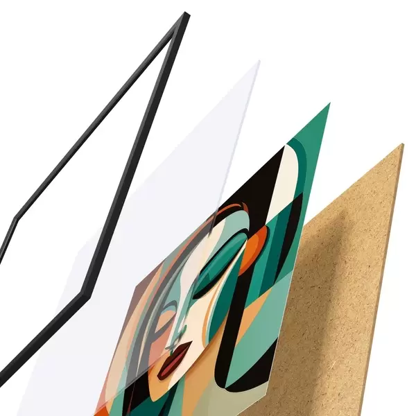 De poster bestaat uit een frame, plexiglas, geprinte afbeelding en spaanplaat achterkant. De poster kan meteen aan de muur worden gehangen dankzij de bevestigingen op de achterkant.