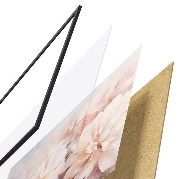 De poster bestaat uit een frame, plexiglas, geprinte afbeelding en spaanplaat achterkant. De poster kan meteen aan de muur worden gehangen dankzij de bevestigingen op de achterkant.