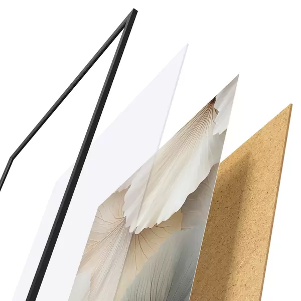 De poster bestaat uit een frame, plexiglas, geprinte afbeelding en spaanplaat achterkant. De poster kan meteen aan de muur worden gehangen dankzij de bevestigingen op de achterkant.