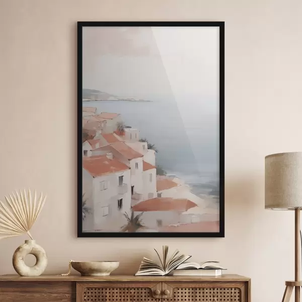 Poster Landschap van een stad aan zee N° f48974