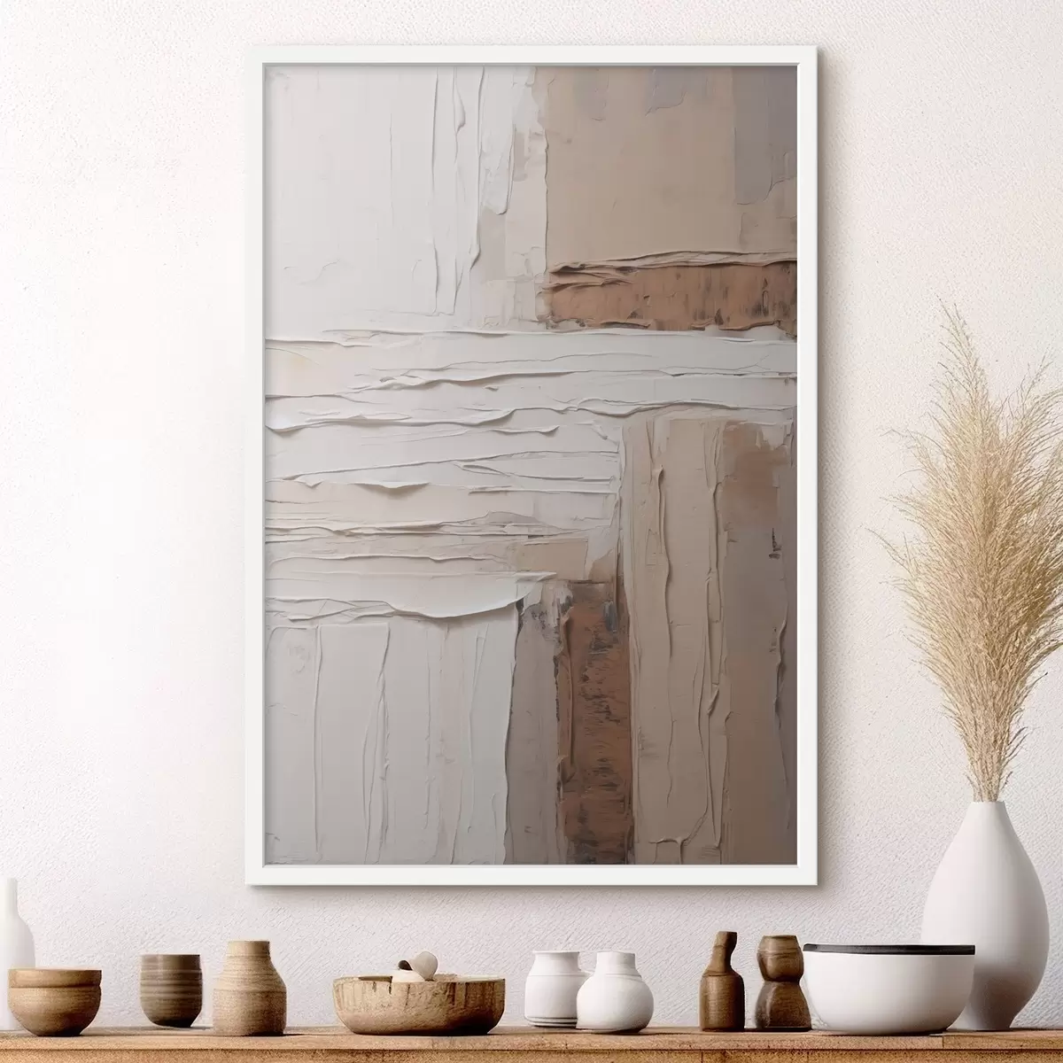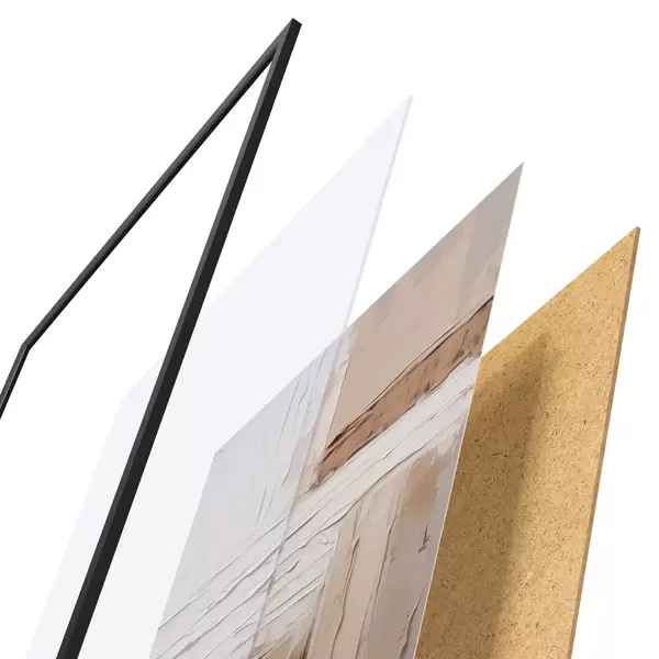 De poster bestaat uit een frame, plexiglas, geprinte afbeelding en spaanplaat achterkant. De poster kan meteen aan de muur worden gehangen dankzij de bevestigingen op de achterkant.