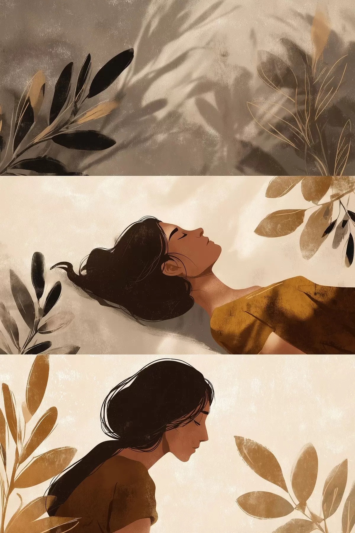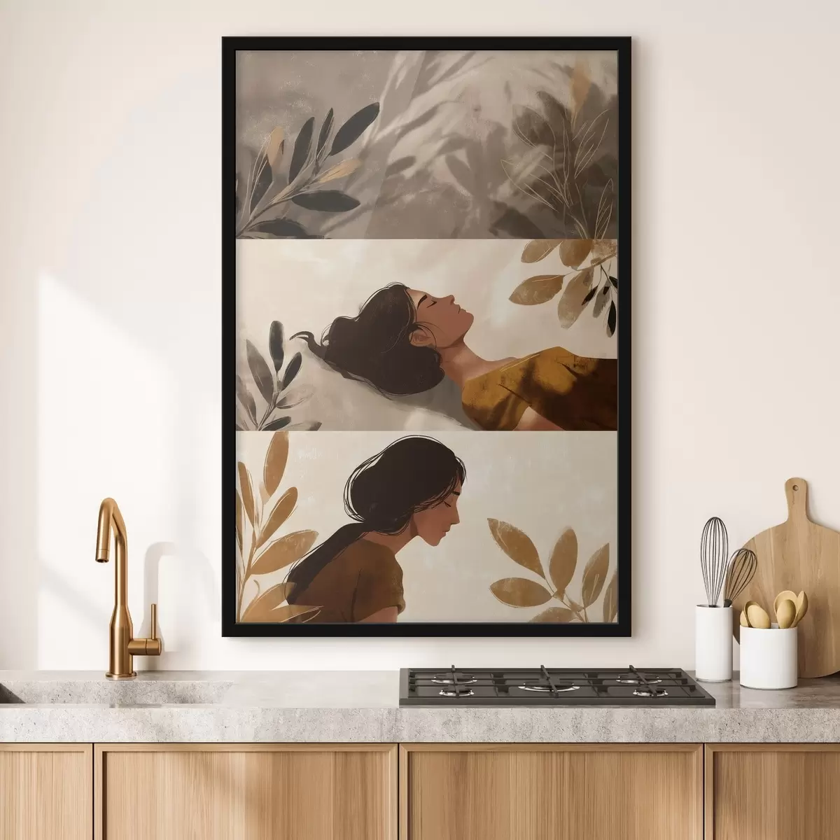 Poster Drieluik ‘Vrouw met bladeren’ f49018