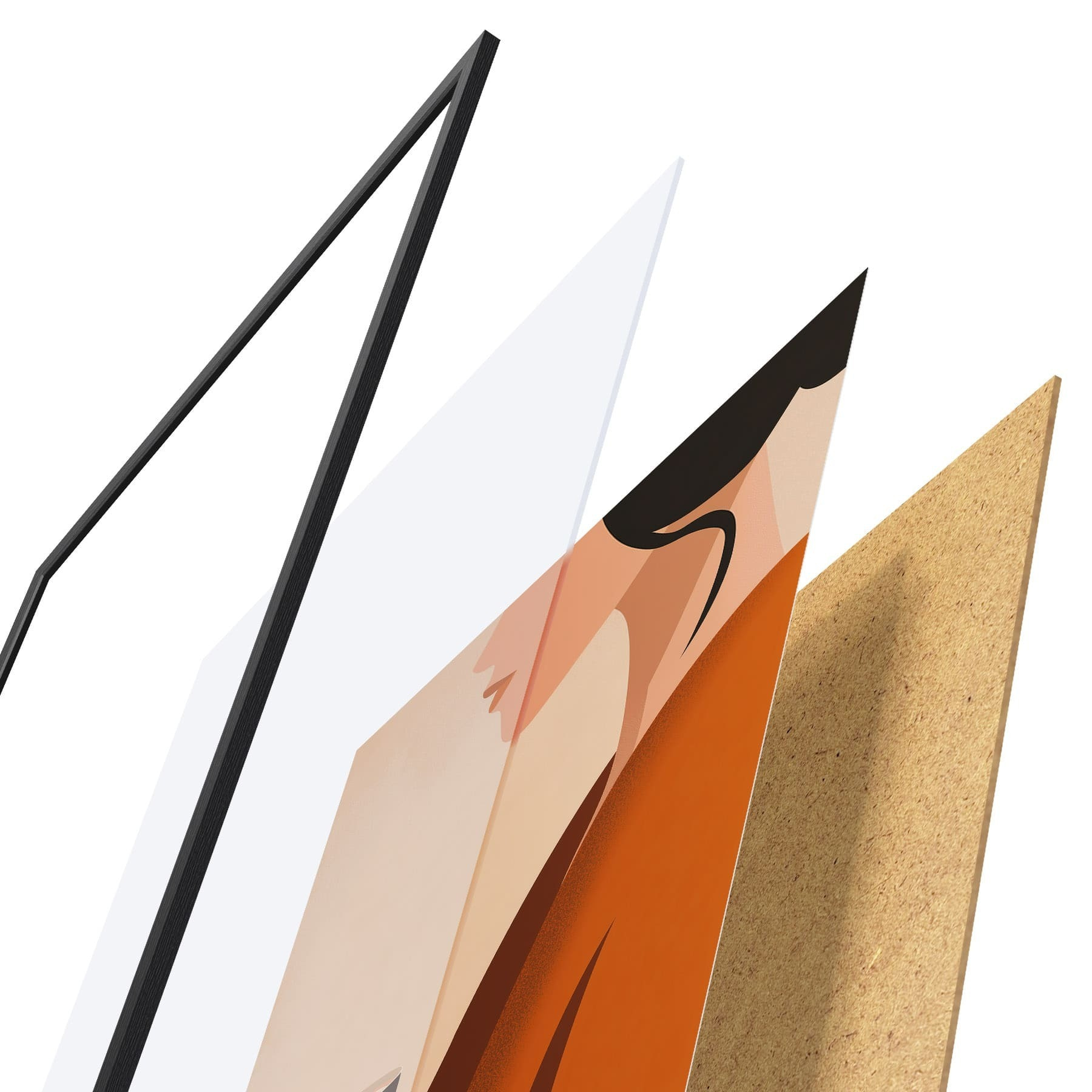 De poster bestaat uit een frame, plexiglas, geprinte afbeelding en spaanplaat achterkant. De poster kan meteen aan de muur worden gehangen dankzij de bevestigingen op de achterkant.