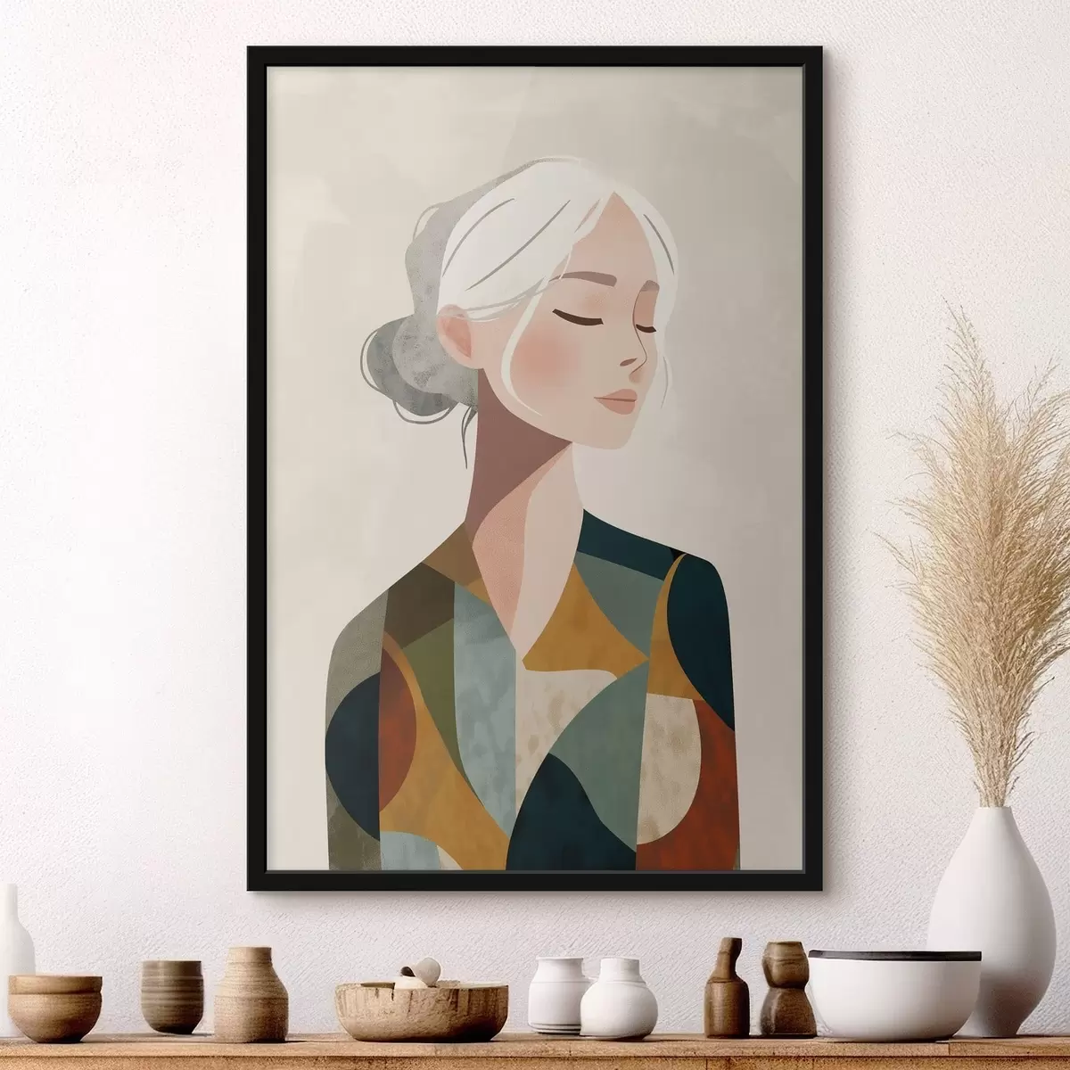 Poster Vrouw in geometrische stijl N° f49029