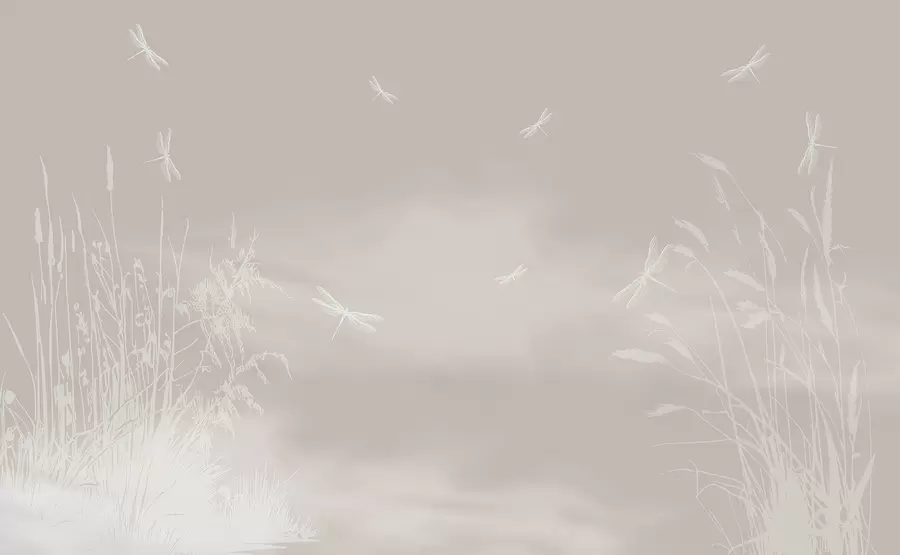 Muurschildering Zacht, piekerig pampagras en aartjes in beige en roze tinten tegen een lichte achtergrond