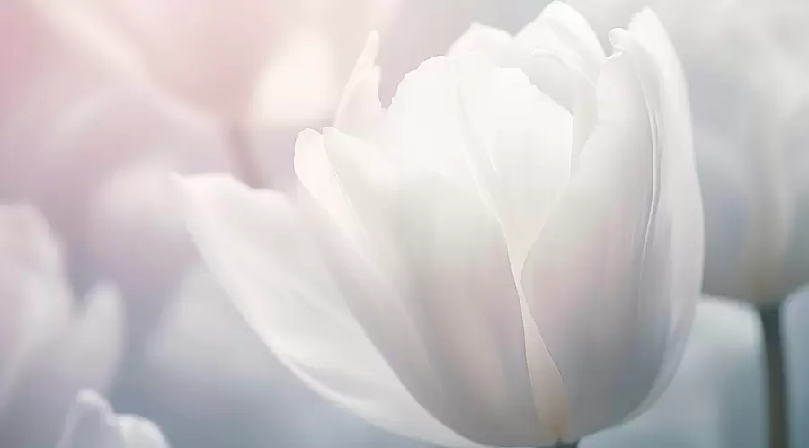 Muurschildering Pluizig wit katoenen gras tegen een vage textuurachtergrond, met een zachte, wazige en serene sfeer