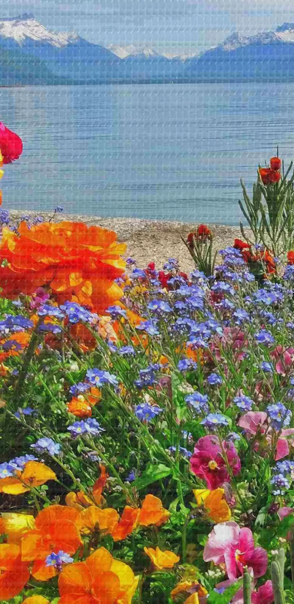 Ronde schilderijen Water, lucht en bloemen Nr r00006