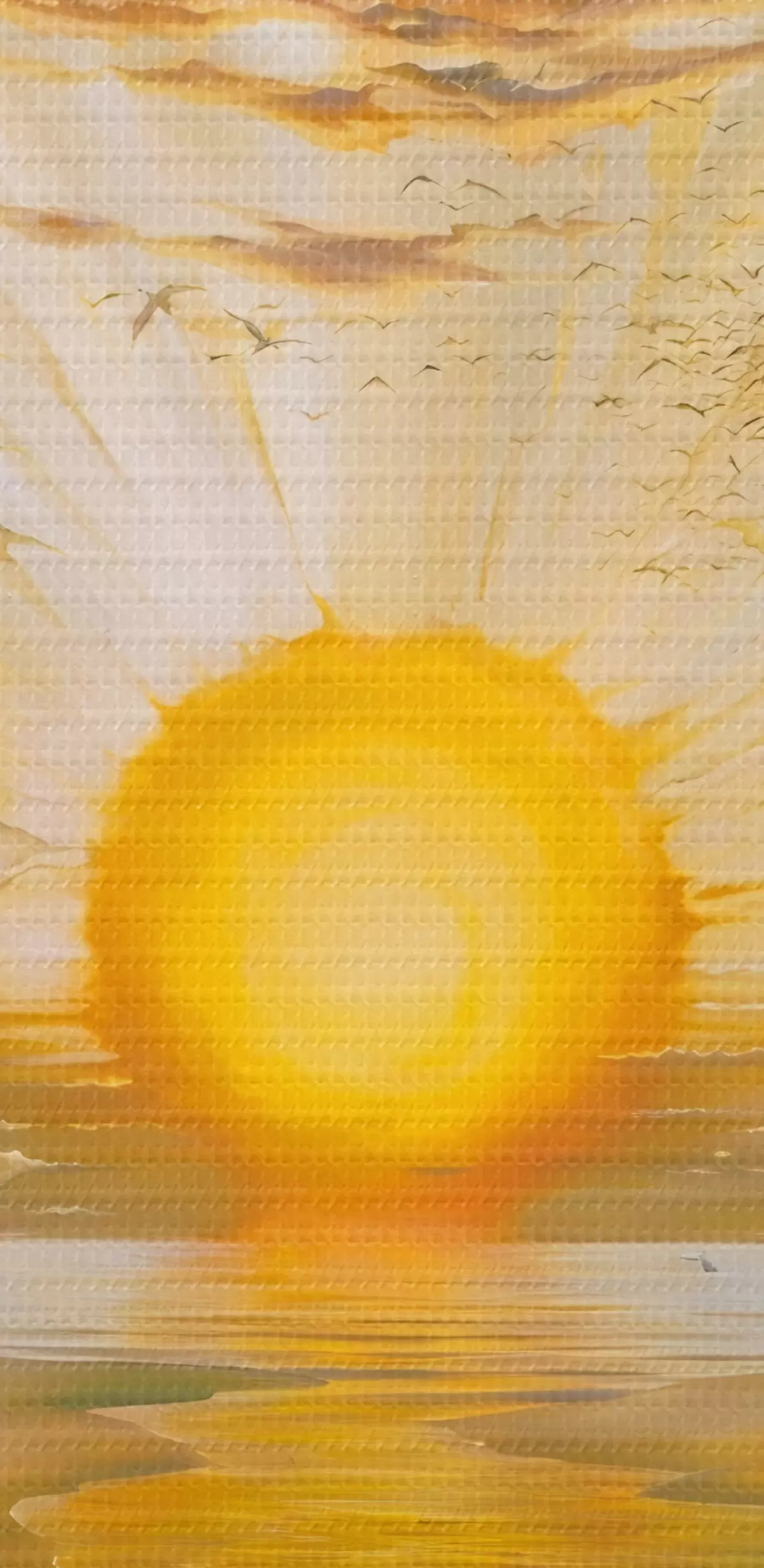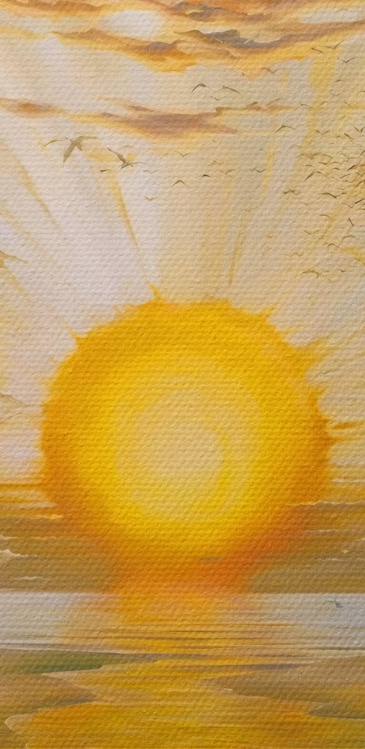 Het schilderij kan direct na ontvangst worden opgehangen. Het schilderij wordt opgespannen op een 2 cm breed houten spieraam.