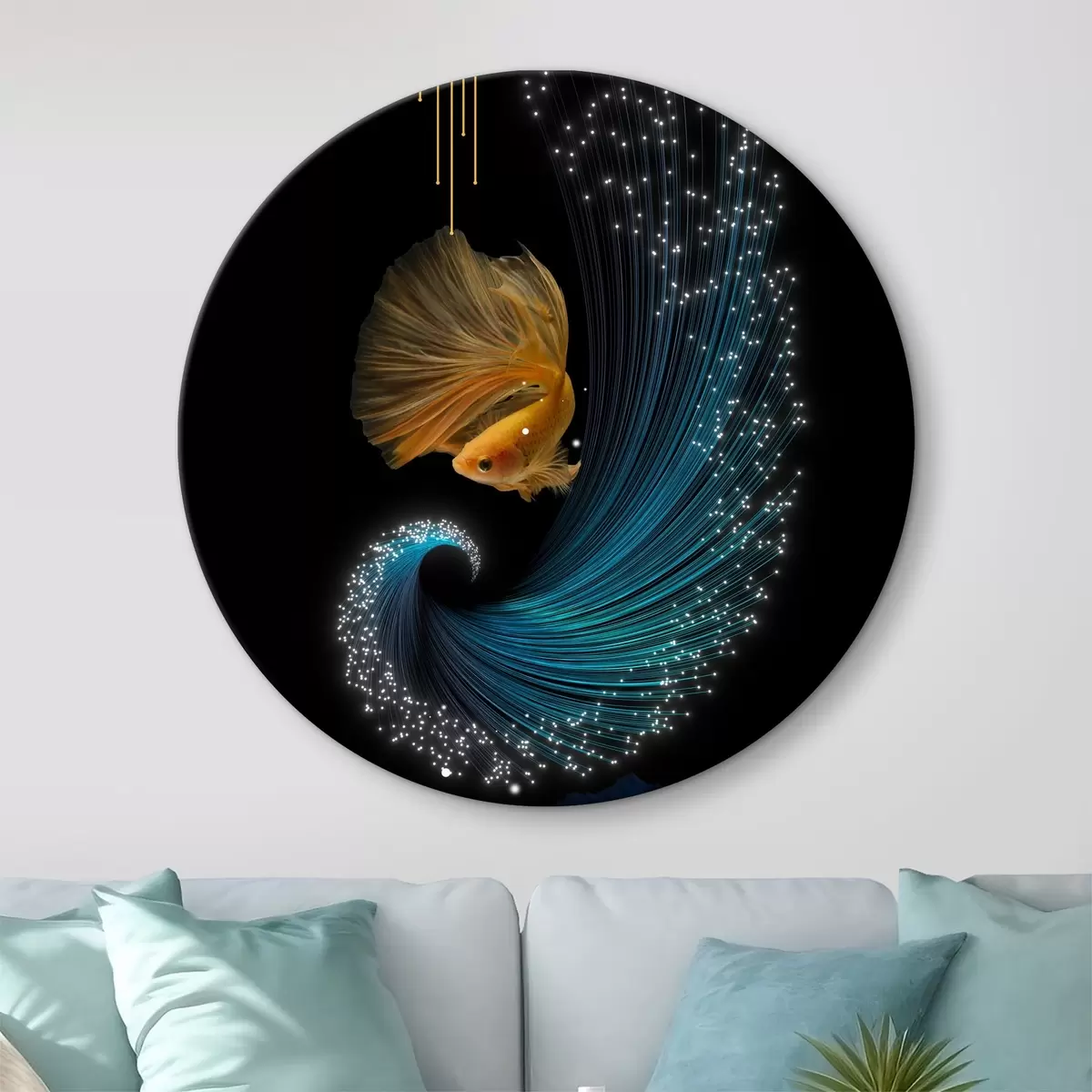 Ronde schilderijen Een vis in een abstracte ruimte Nr r02874