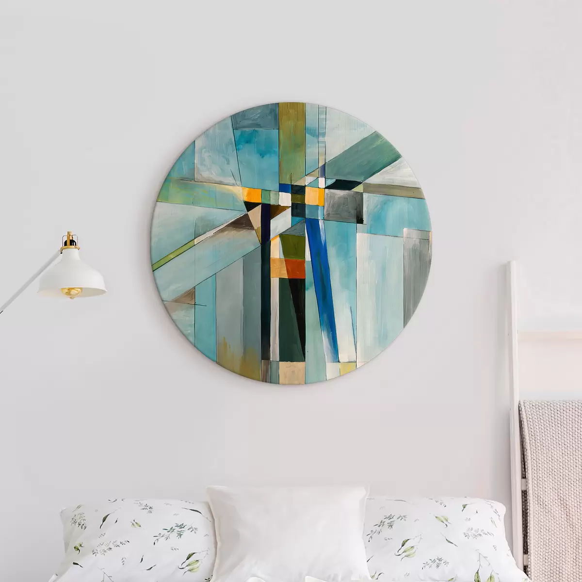 Ronde schilderijen Verf, azuur en textiel Nr r03060
