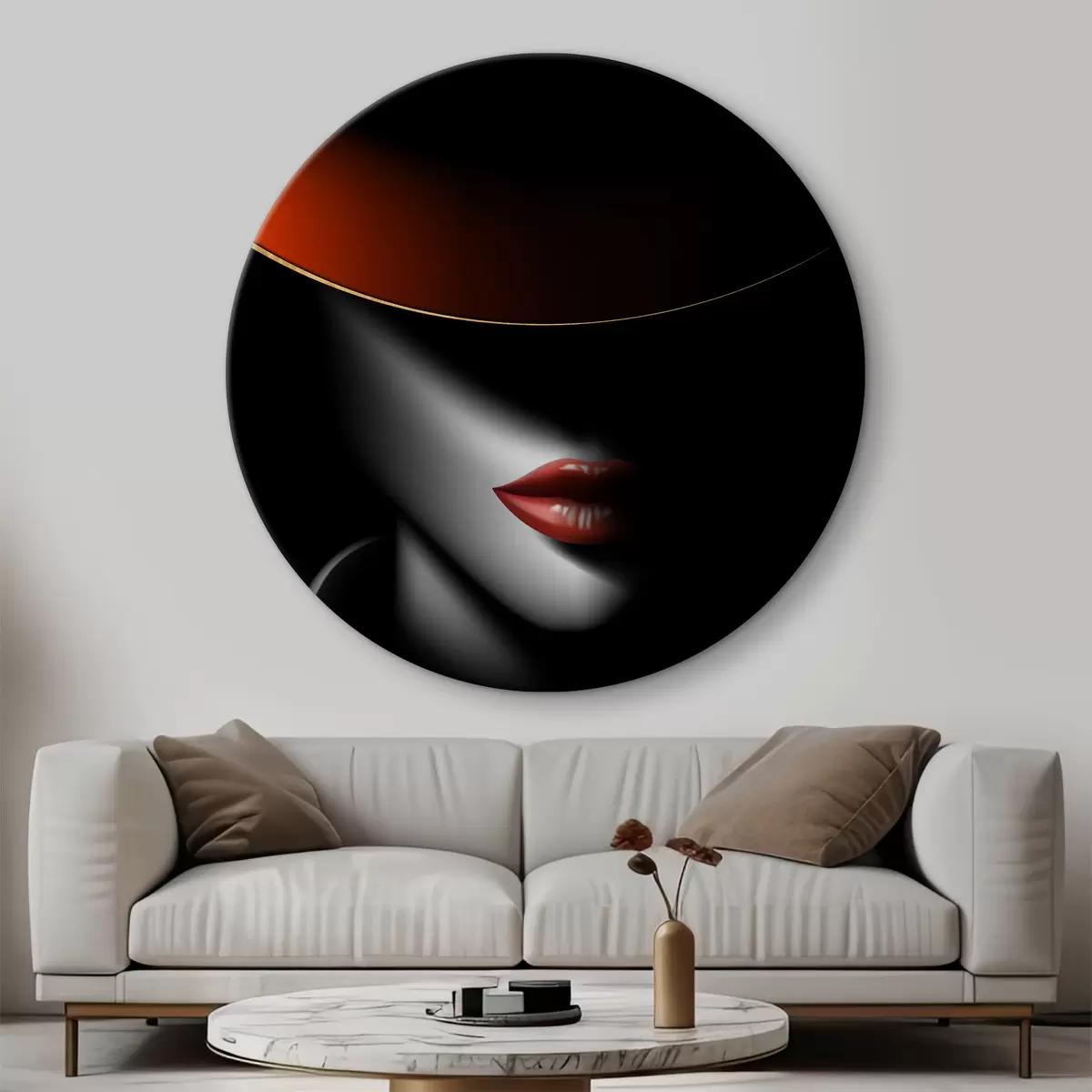 Ronde schilderijen Lip, flitsfotografie e hoed Nr r03483