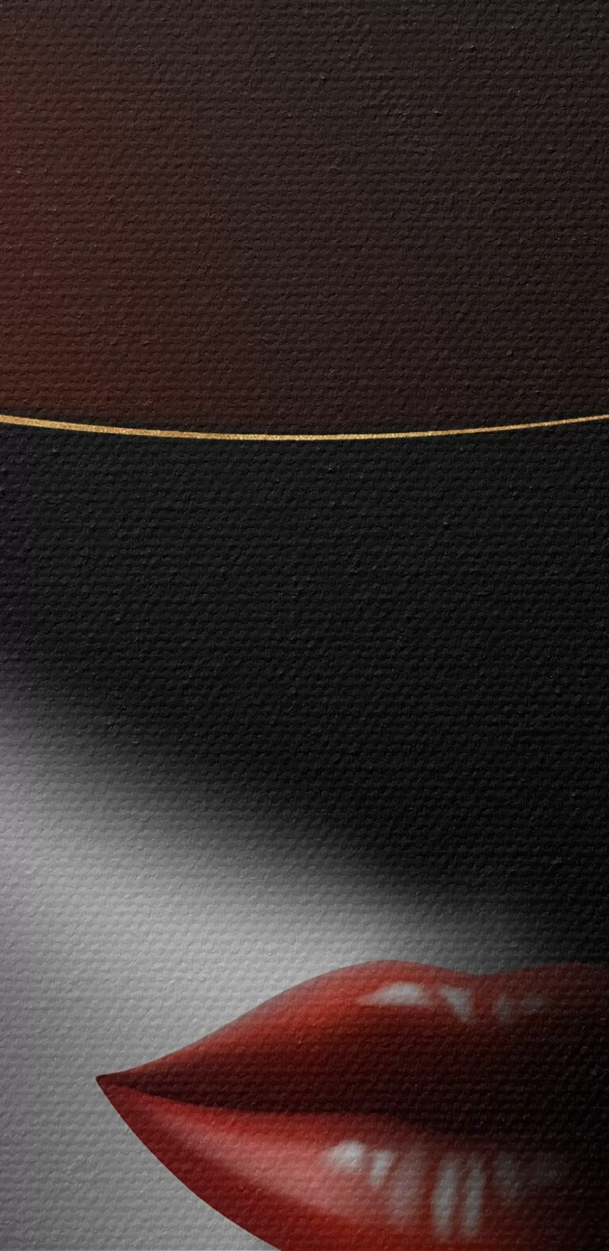 Ronde schilderijen Lip, flitsfotografie e hoed r03483