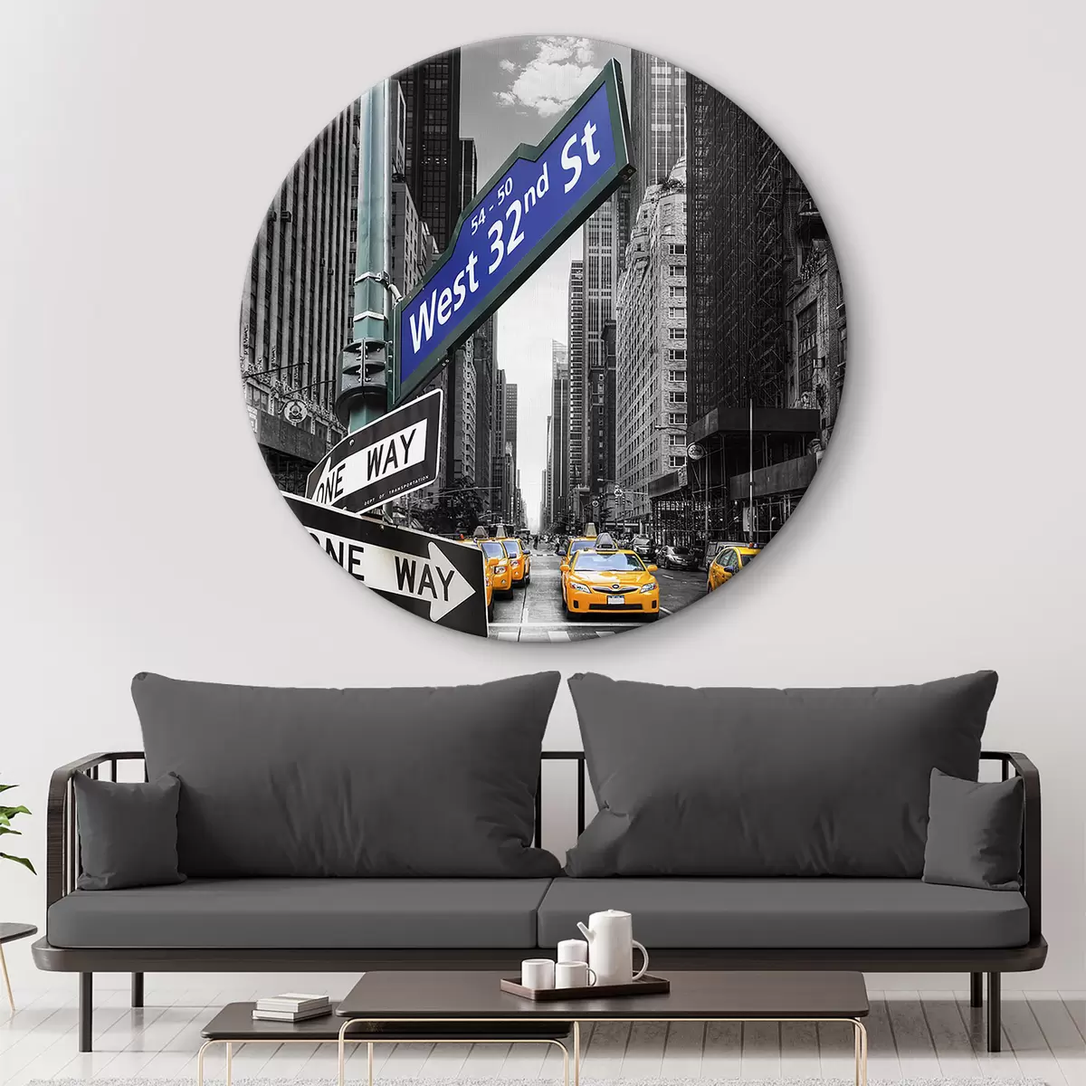 Ronde schilderijen Gebouw, wolkenkrabber e auto Nr r07151
