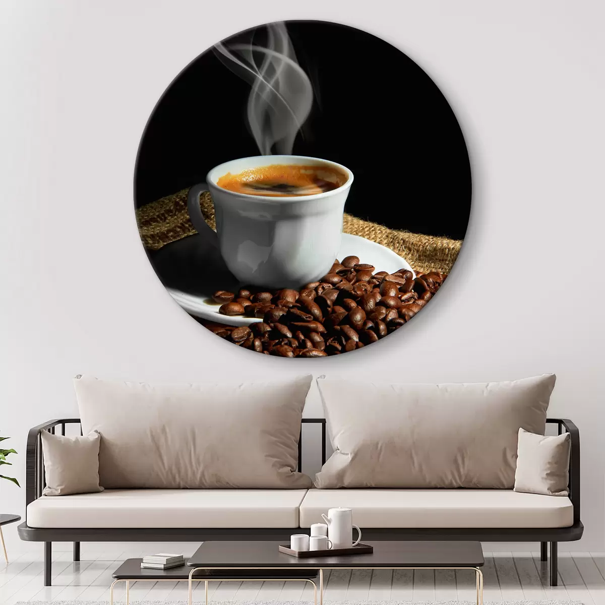 Ronde schilderijen Eten, koffie van één bron en servies Nr r07770