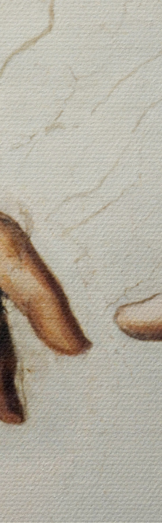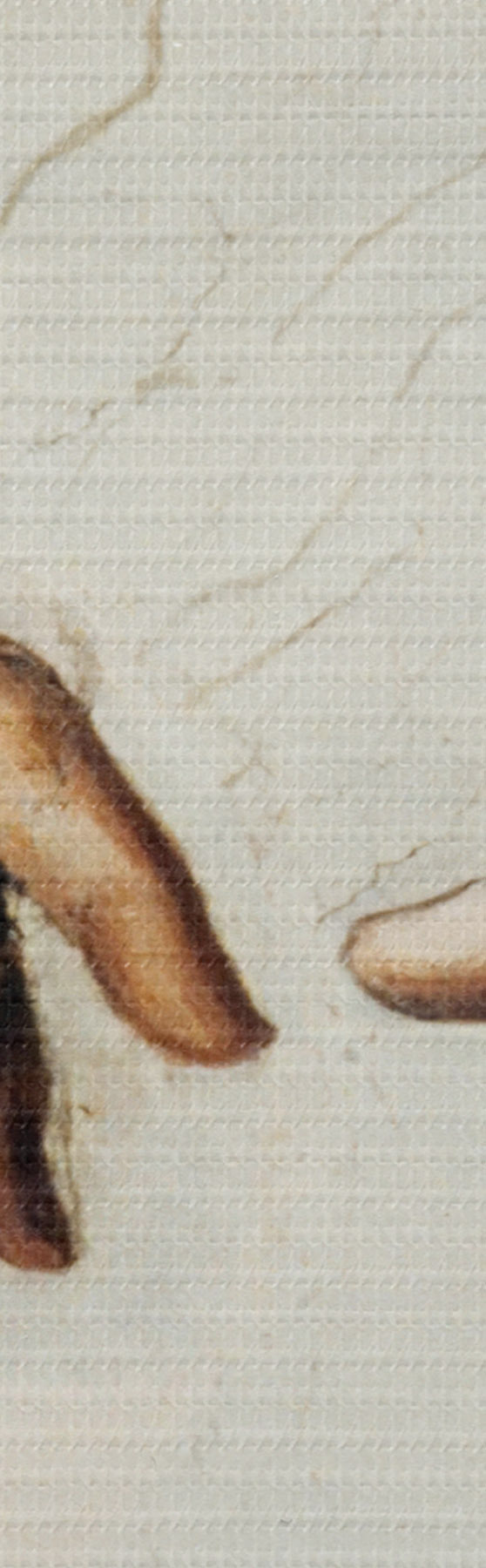 Het schilderij kan voorzichtig worden schoongeveegd met een droge zachte doek of spons; het wordt niet aanbevolen om natte producten te gebruiken. Het gebruik van een vochtige spons is alleen toegestaan als het schilderij gevernist is.