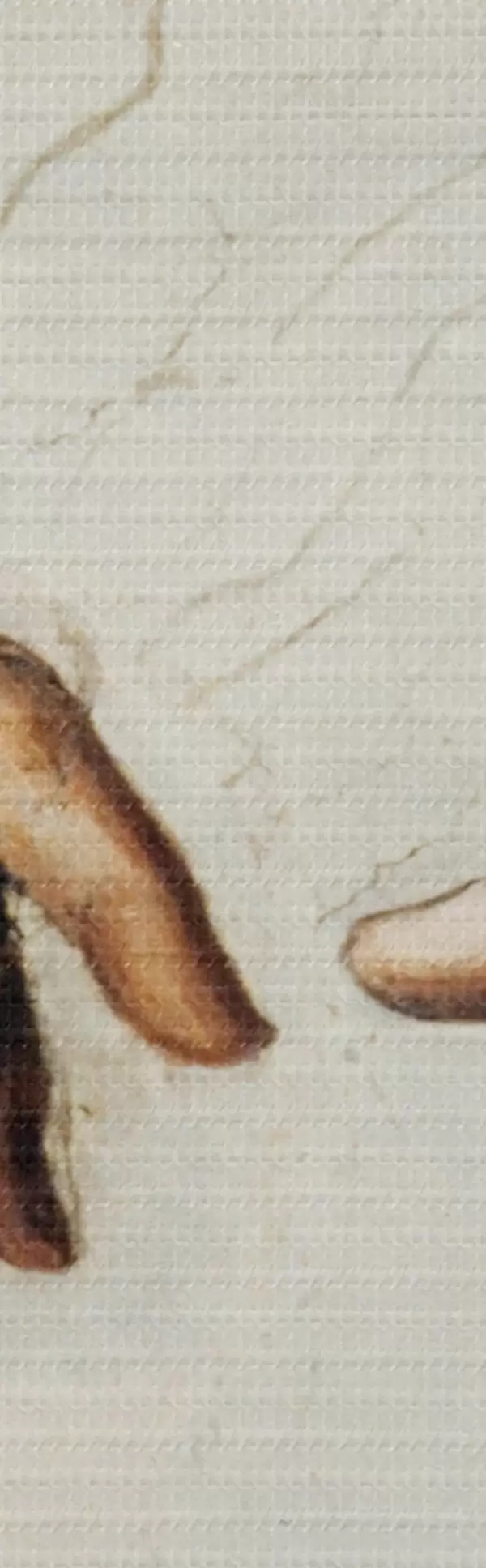Om het doek op te spannen op spielatten zonder de afbeelding te beschadigen, gebruiken we gespiegeld beeld.