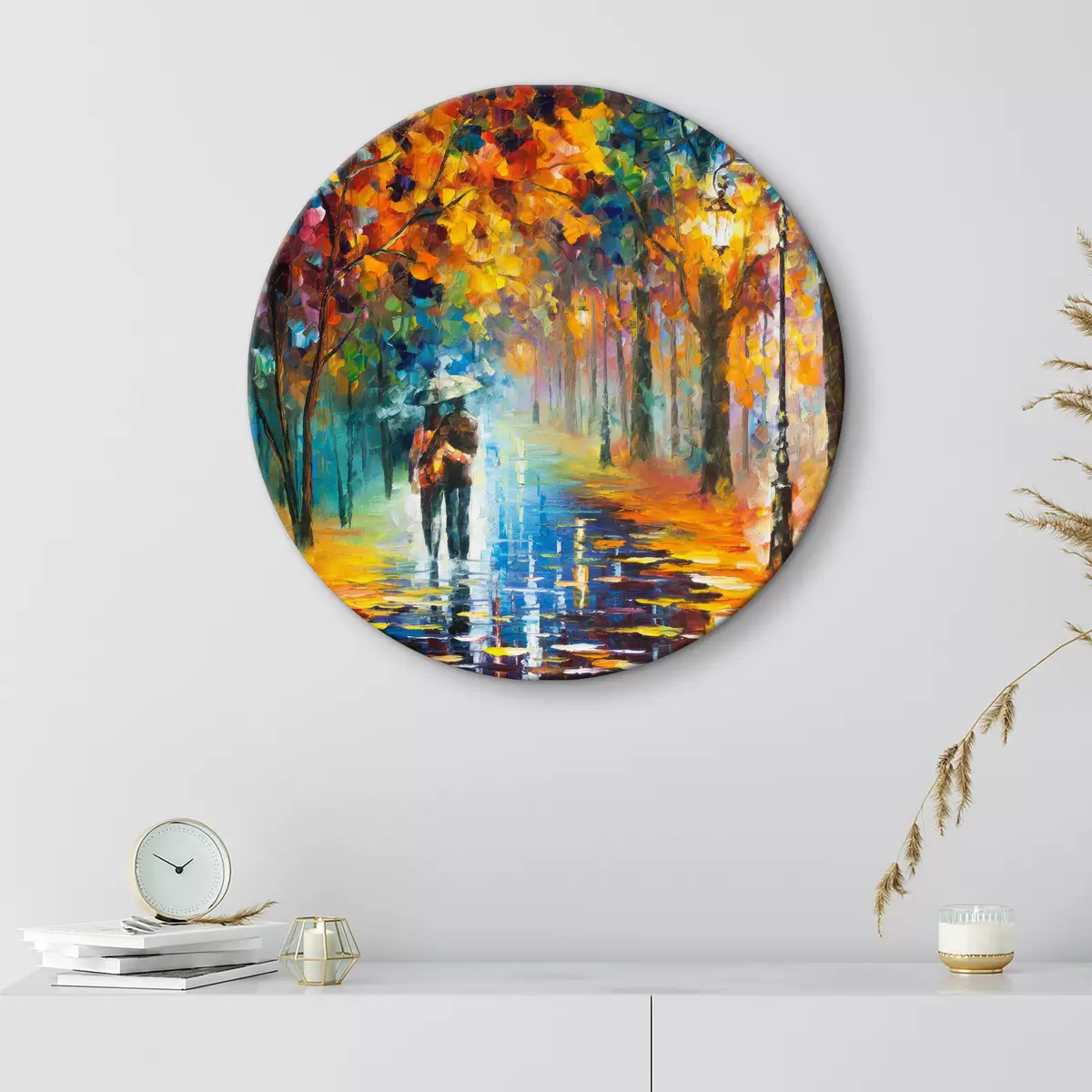 Ronde schilderijen Paar onder een paraplu, herfst Nr r15186