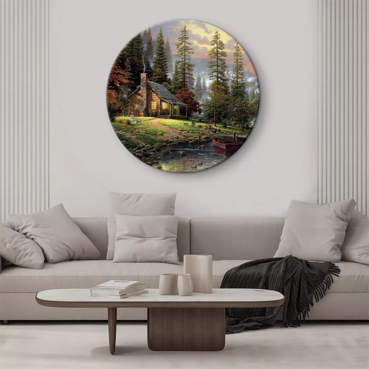 Ronde schilderijen Vissershut in het bos bij de beek r15556