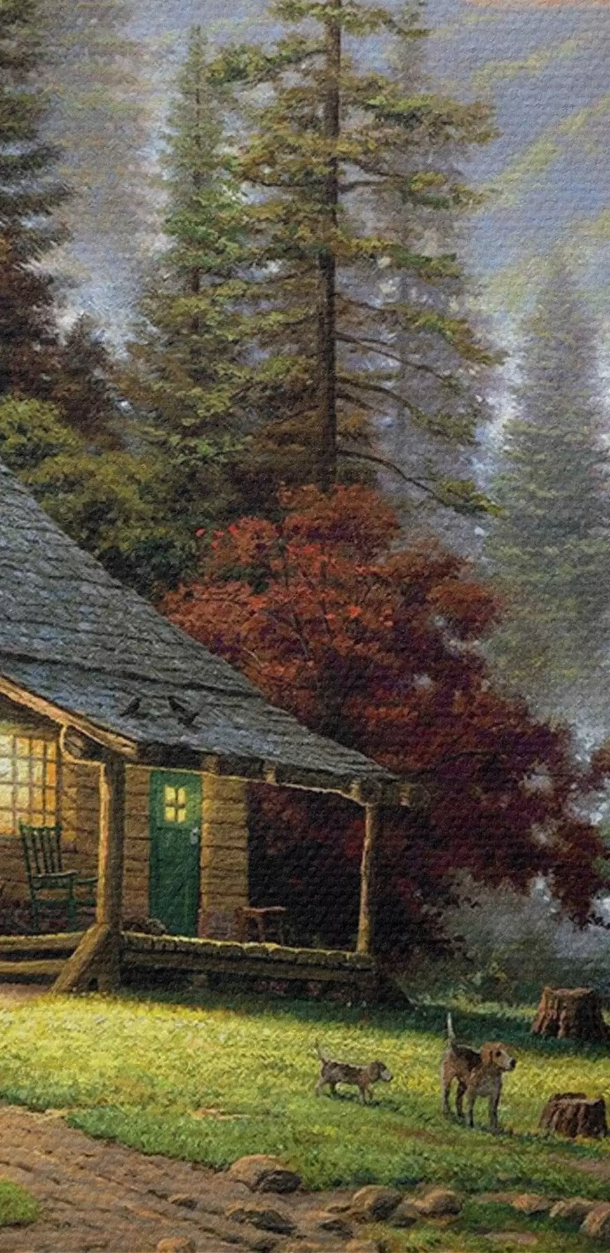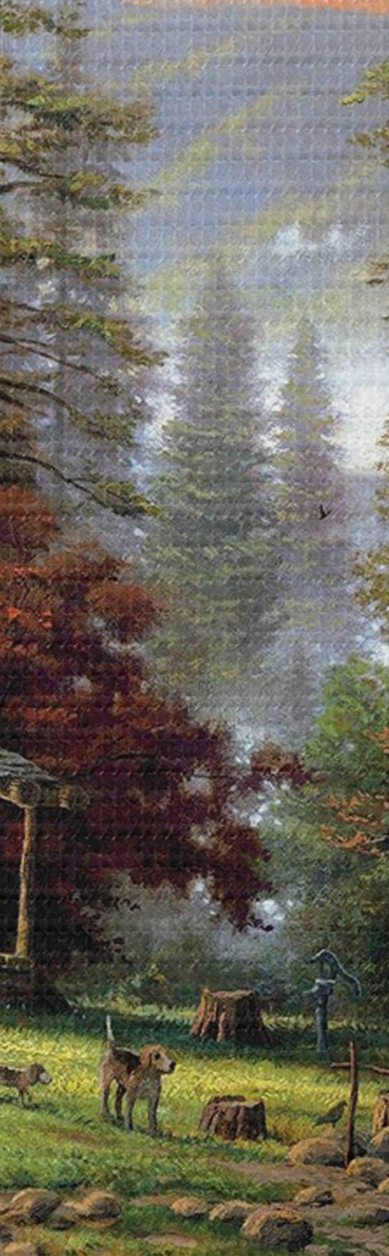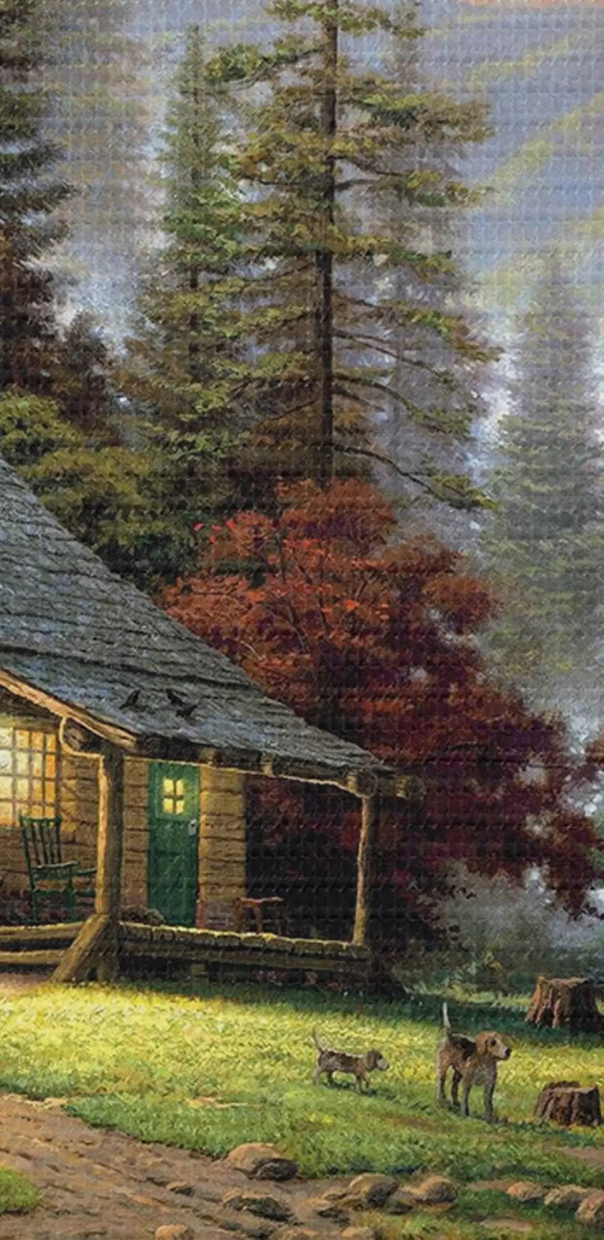 Ronde schilderijen Vissershut in het bos bij de beek Nr r15556