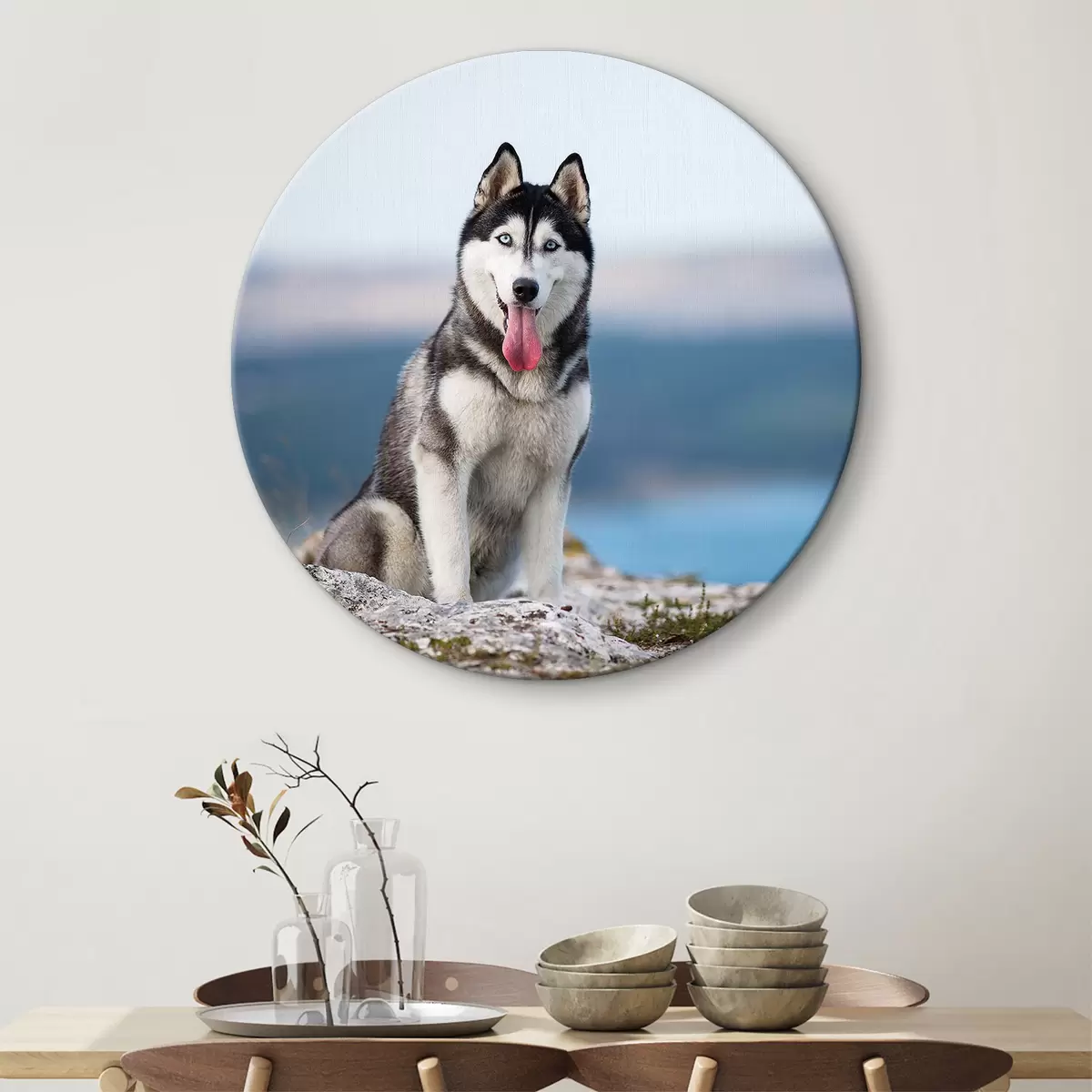 Ronde schilderijen Lucht, water en hond Nr r15711