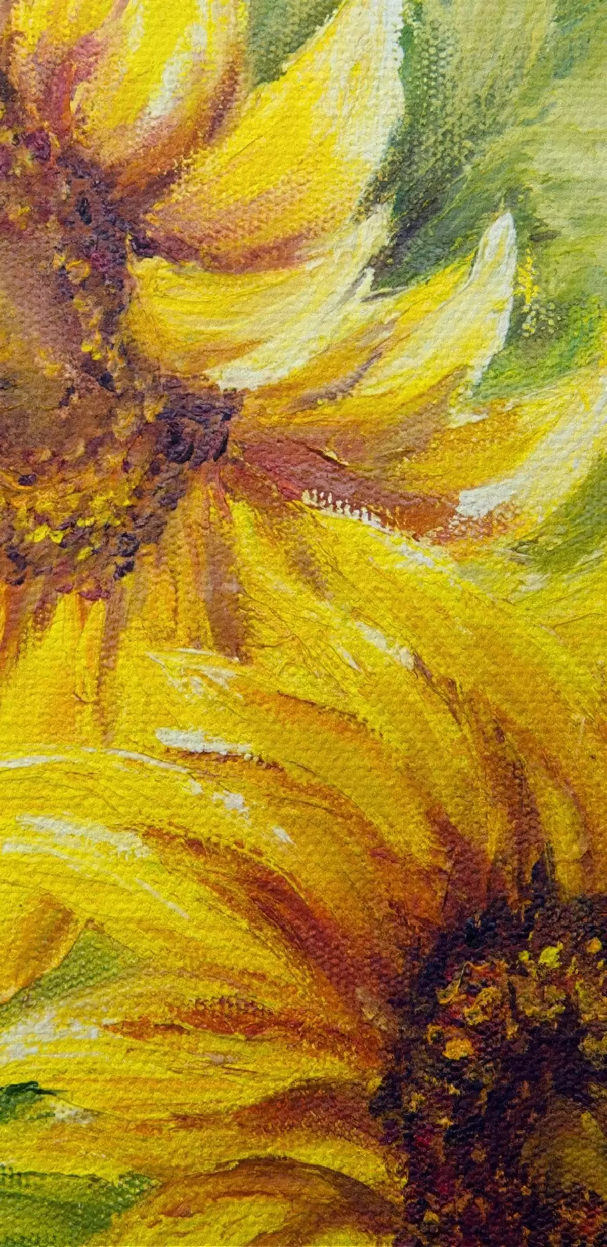 Het schilderij kan direct na ontvangst worden opgehangen. Het schilderij wordt opgespannen op een 2 cm breed houten spieraam.