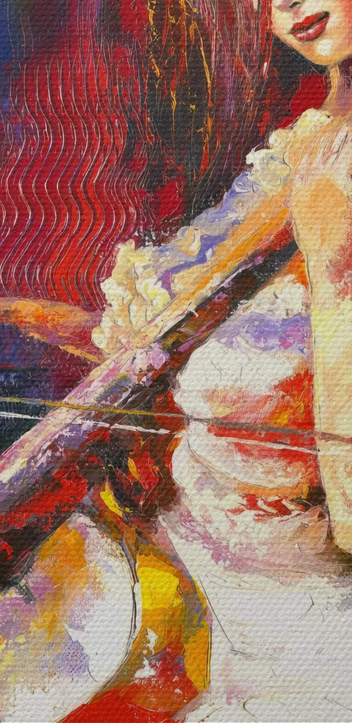 Het schilderij kan direct na ontvangst worden opgehangen. Het schilderij wordt opgespannen op een 2 cm breed houten spieraam.
