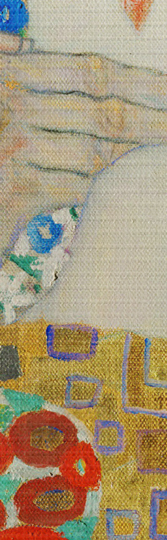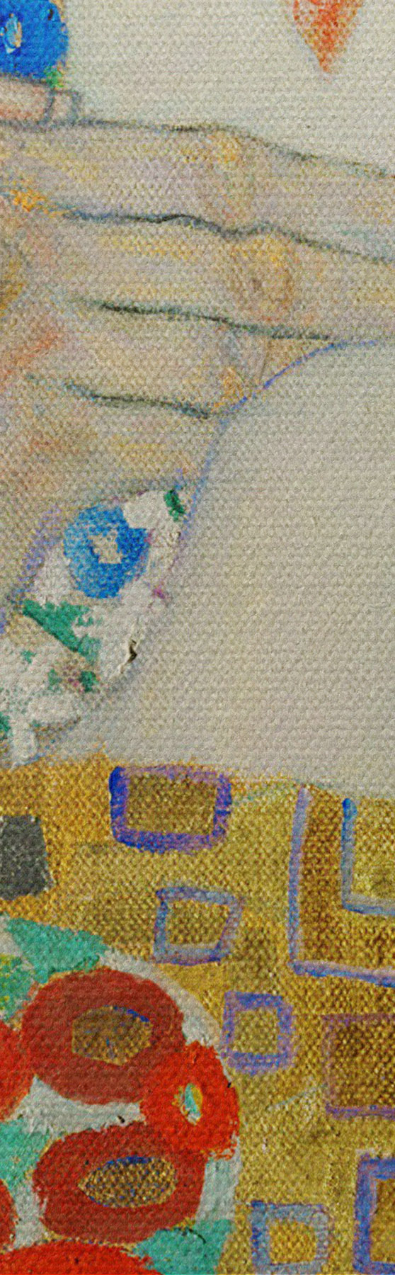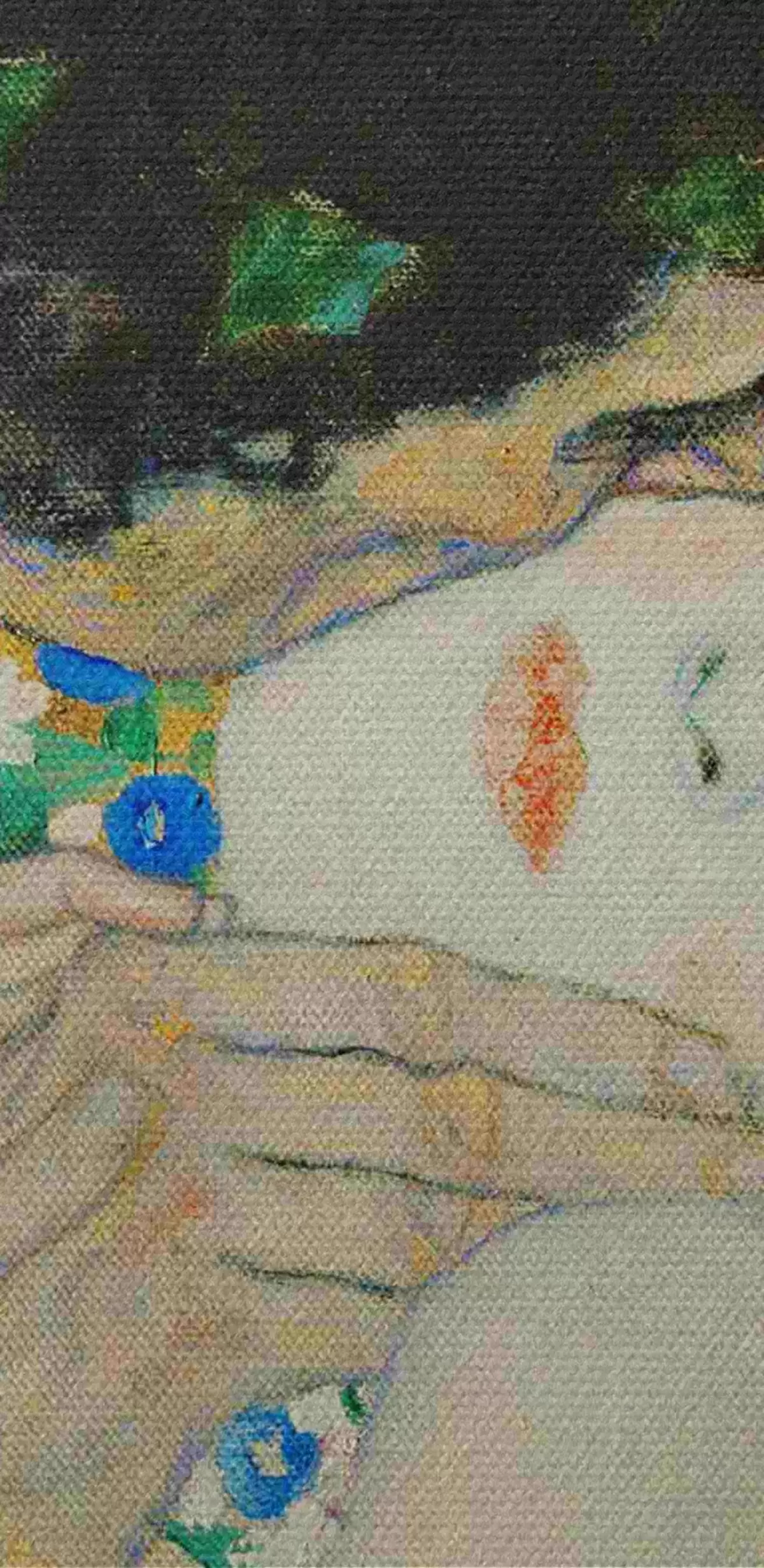 Het schilderij kan voorzichtig worden schoongeveegd met een droge zachte doek of spons; het wordt niet aanbevolen om natte producten te gebruiken. Het gebruik van een vochtige spons is alleen toegestaan als het schilderij gevernist is.