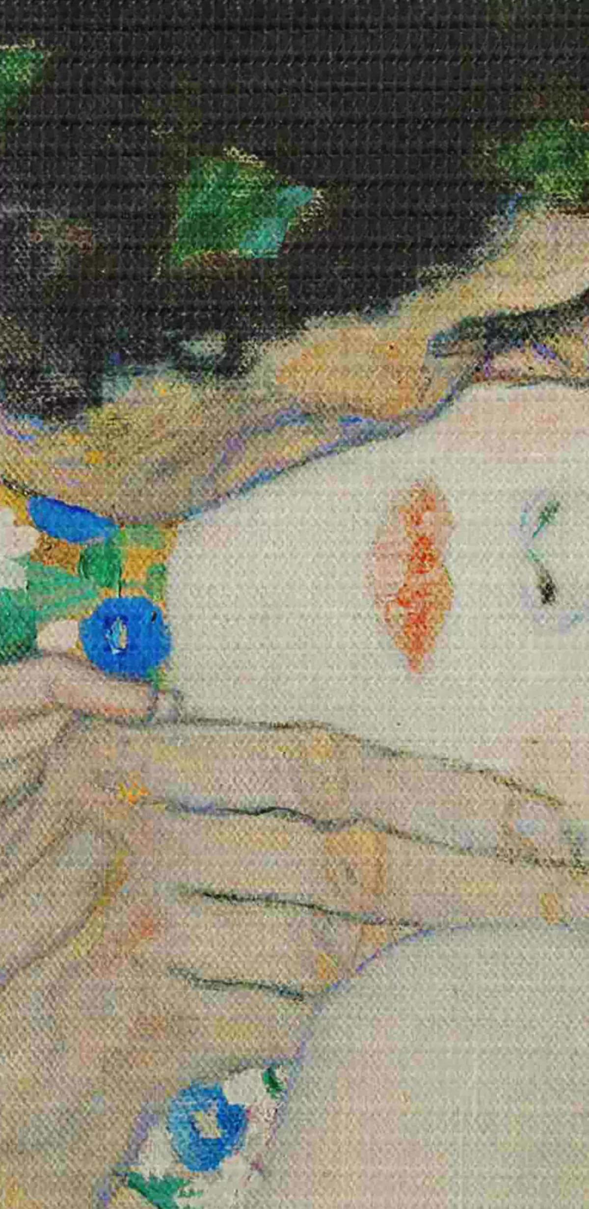 Om het doek op te spannen op spielatten zonder de afbeelding te beschadigen, gebruiken we gespiegeld beeld.