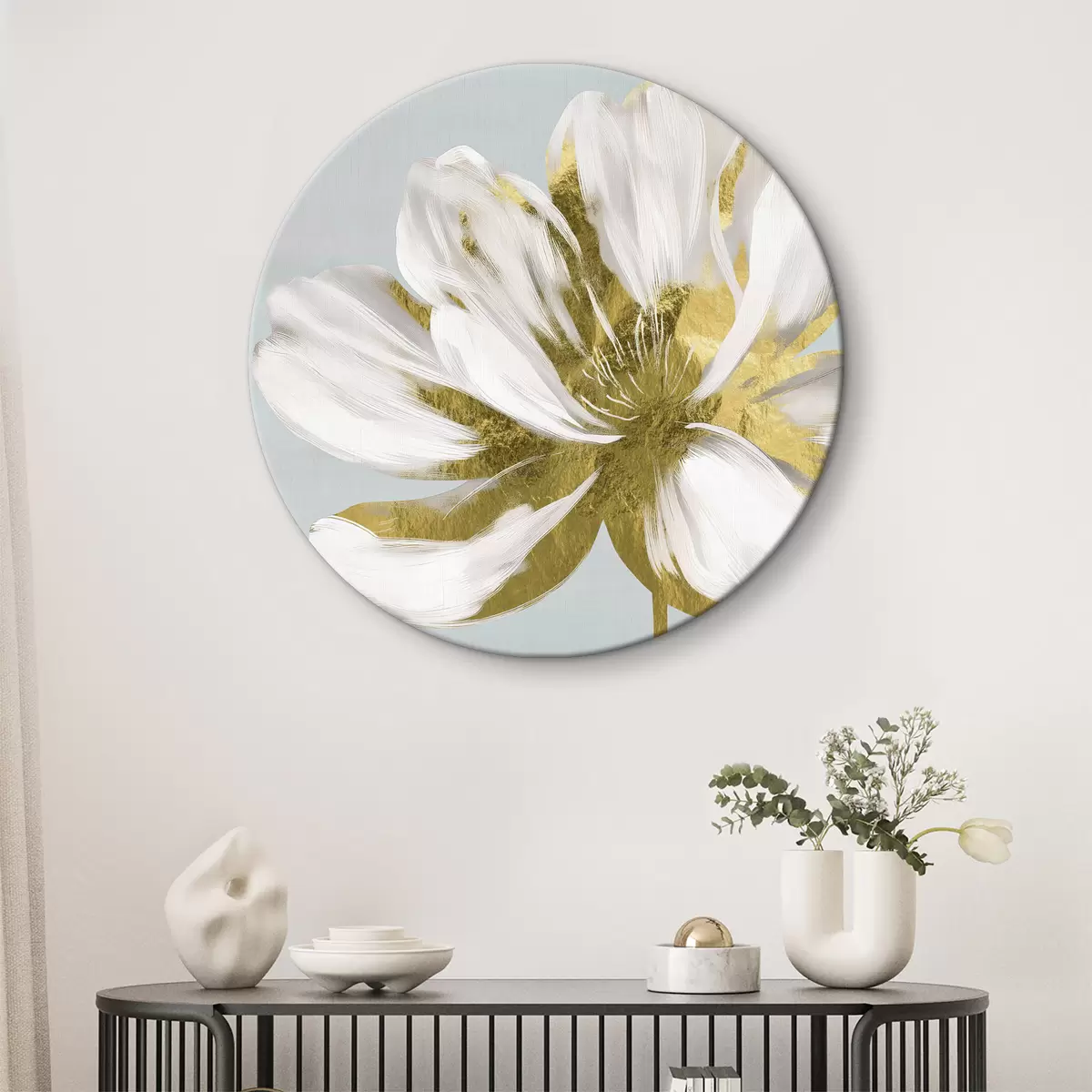 Ronde schilderijen Grote abstracte bloem op een blauwe achtergrond Nr r26121