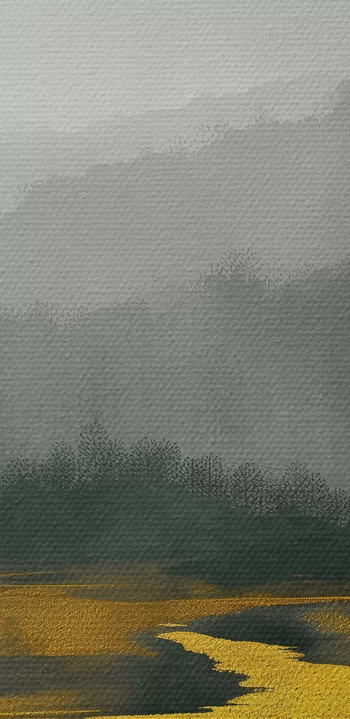 Het schilderij kan direct na ontvangst worden opgehangen. Het schilderij wordt opgespannen op een 2 cm breed houten spieraam.