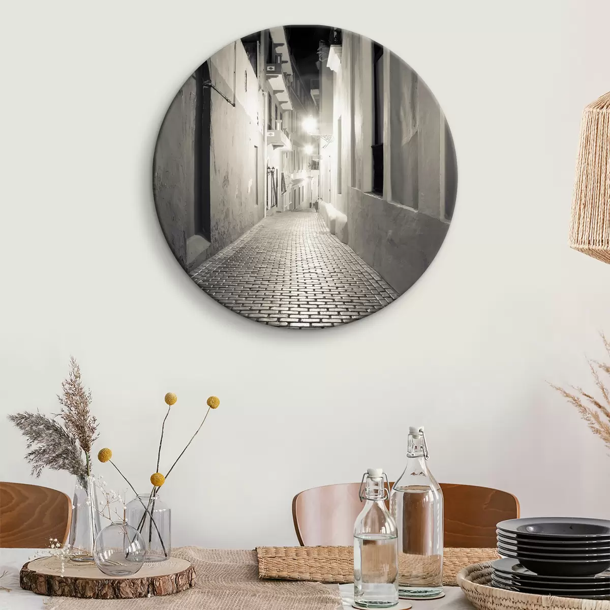 Ronde schilderijen Gebouw, wegdek en zwart-wit Nr r30415