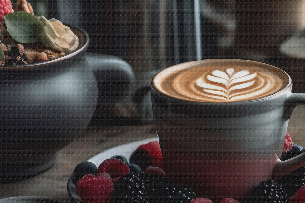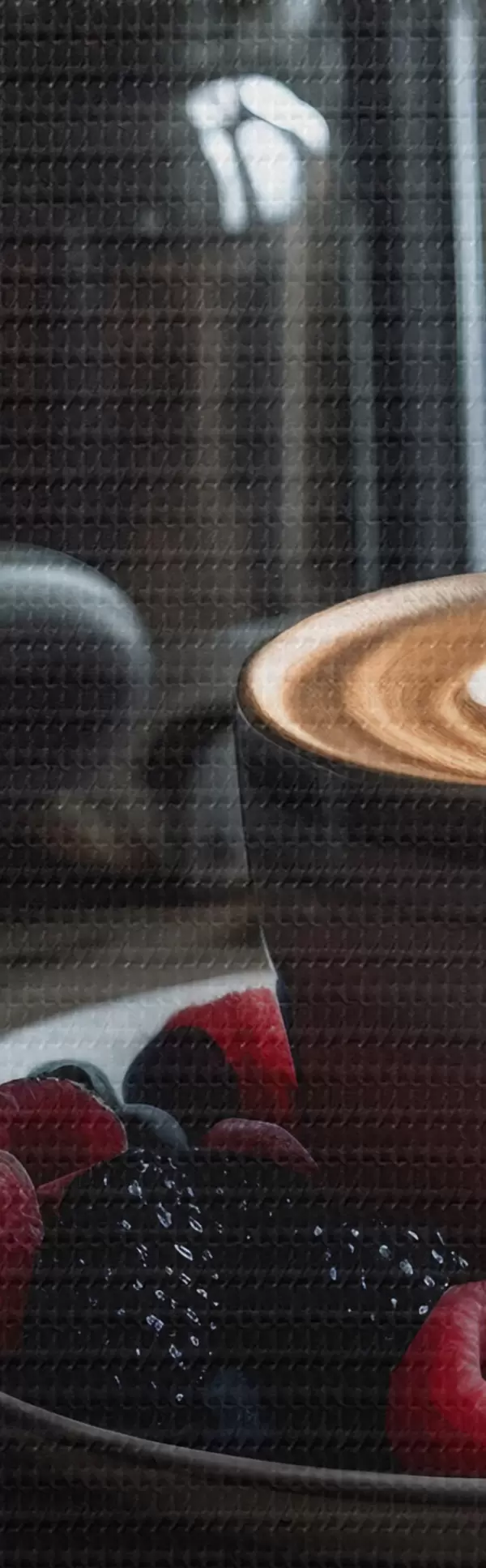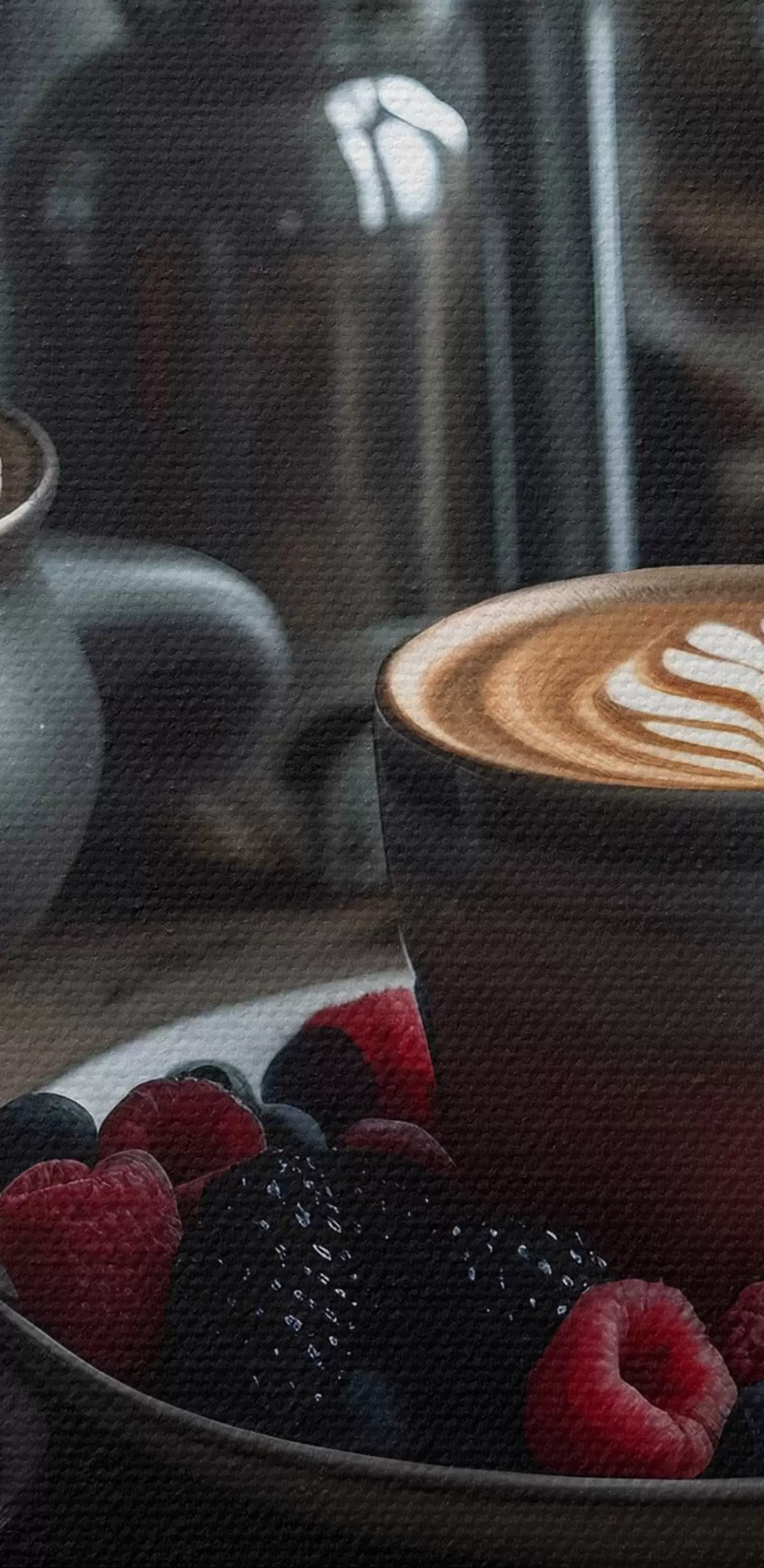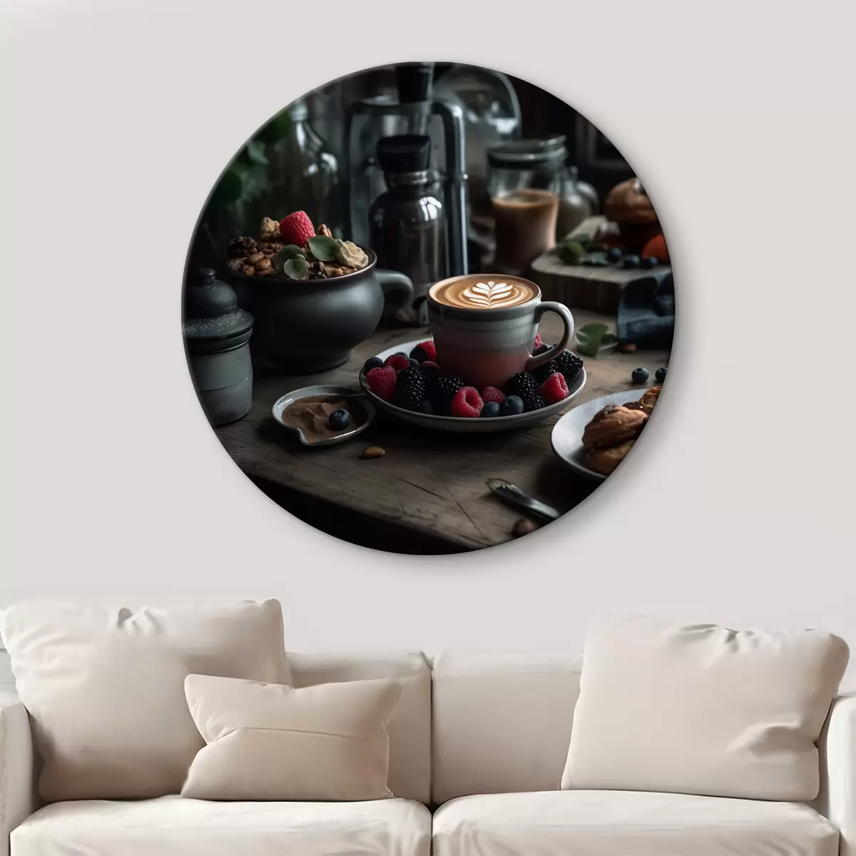 Ronde schilderijen Gezond ontbijt met cappuccino Nr r32154