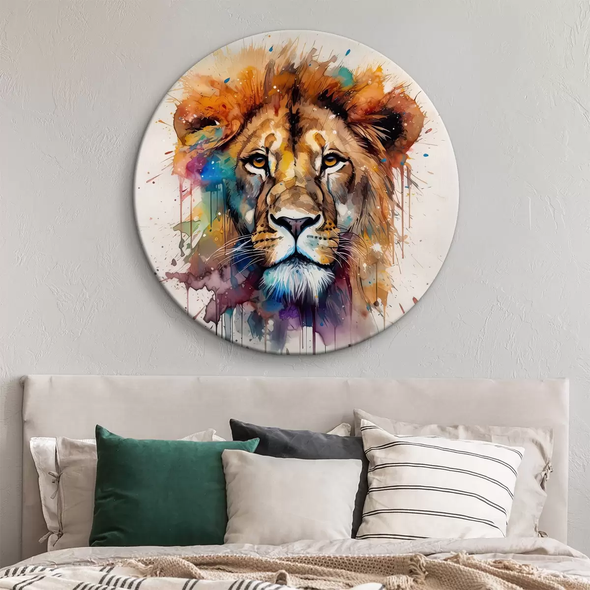 Ronde schilderijen Een leeuw in aquarelstijl Nr r32325