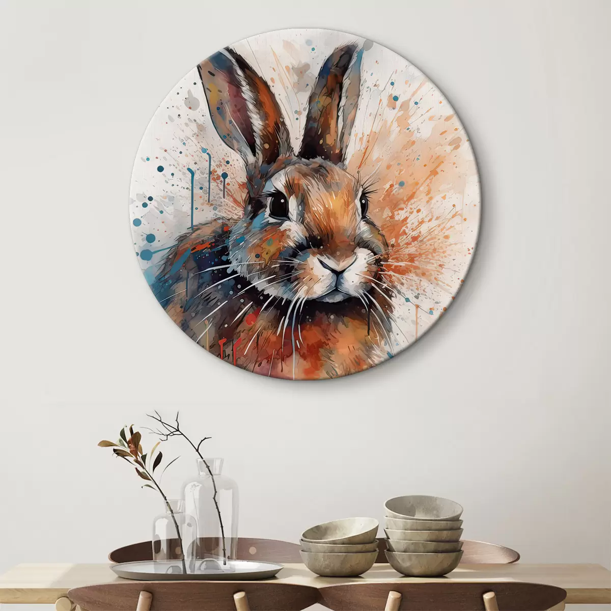 Ronde schilderijen Konijn, kunstverf en konijnen en hazen r32329